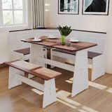 Breakfast Nook Table Set - Corner Kitchen Dining Table Set for 4-6 People, Solid Pine Wood Modern Farmhouse Dining Room Set with L-Shaped Bench, Space-Saving for Small Spaces & Apartments, White