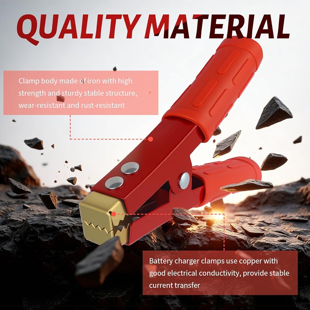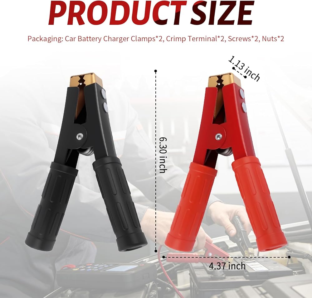 • Quality Material: Battery charger clamps use copper with good electrical conductivity, provide stable current transfer, and clamp body made of iron with high strength and sturdy stable structure, wear-resistant and rust-resistant, not easy to break and damage, to keep long-term stable use