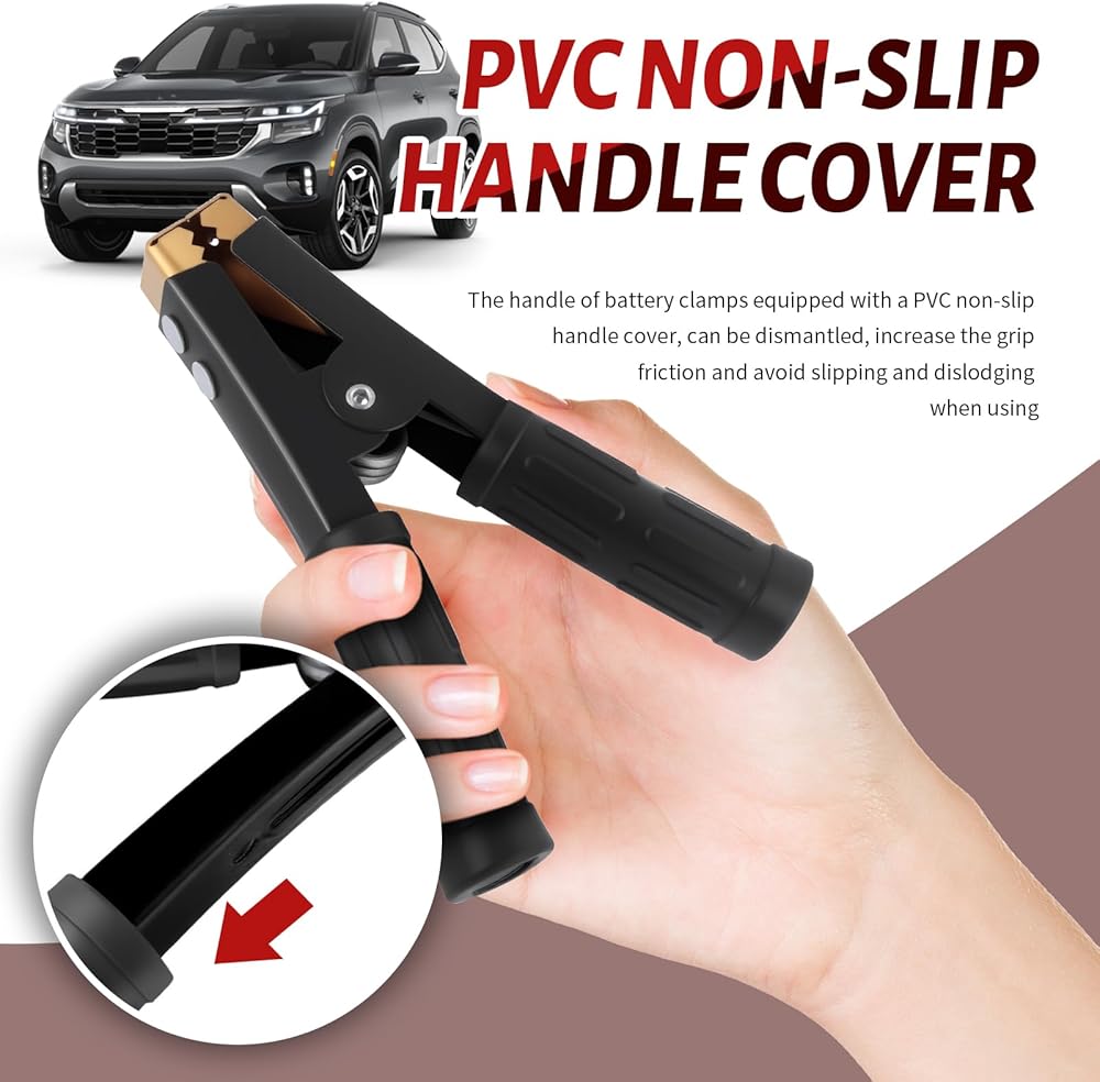 • PVC Non-slip Handle Cover: The handle of battery clamps equipped with a PVC non-slip handle cover, can be dismantled, increase the grip friction and avoid slipping and dislodging when using, and it can also play an insulating role, effectively protect your hands, installation safer and easier
