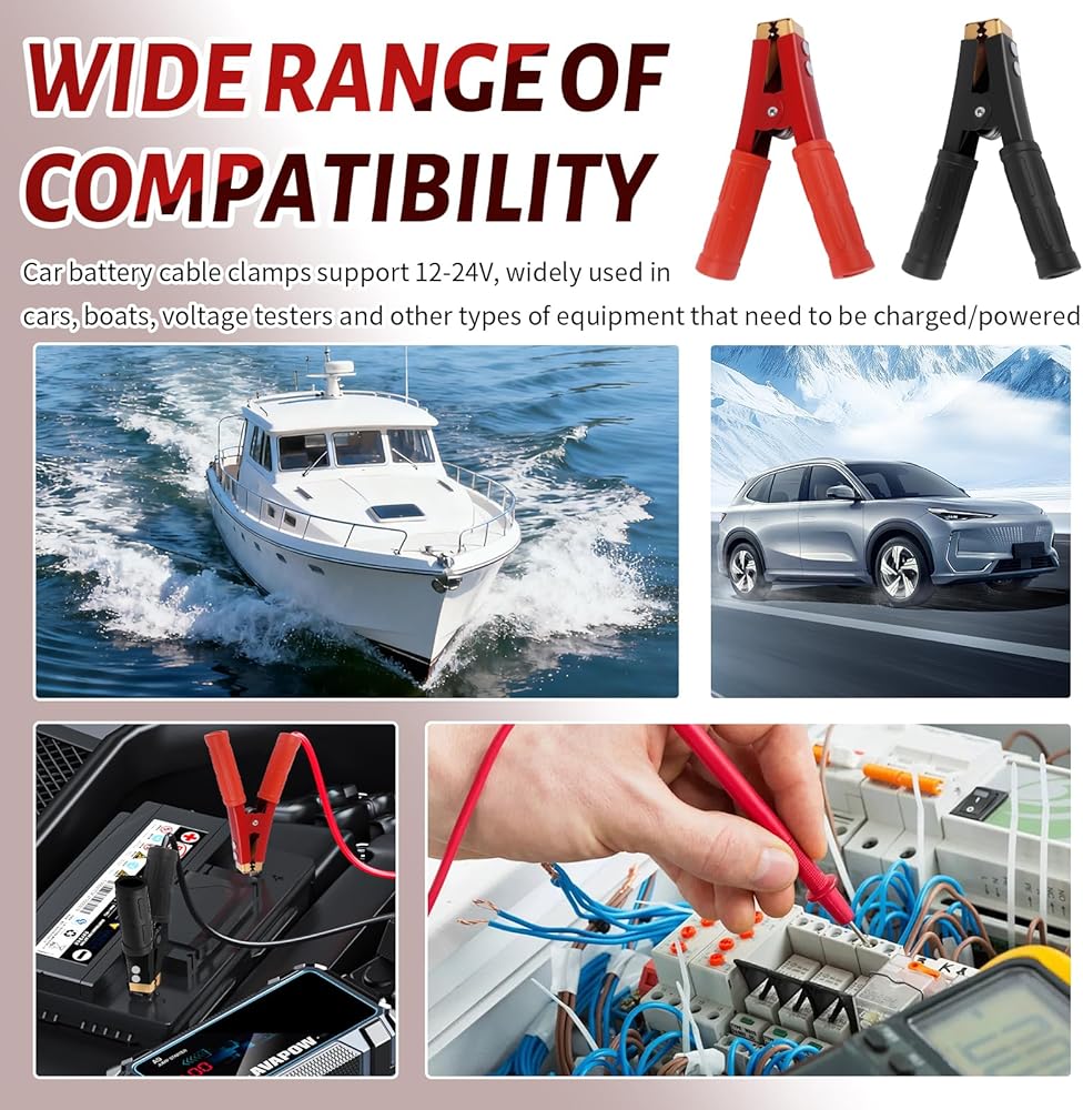 • Wide Range of Compatibility: Car battery cable clamps support 12-24V, widely used in cars, boats, voltage testers and other types of equipment that need to be charged/powered, emergency, daily charging scenarios full coverage, multi-device universal stress-free, your car essentials