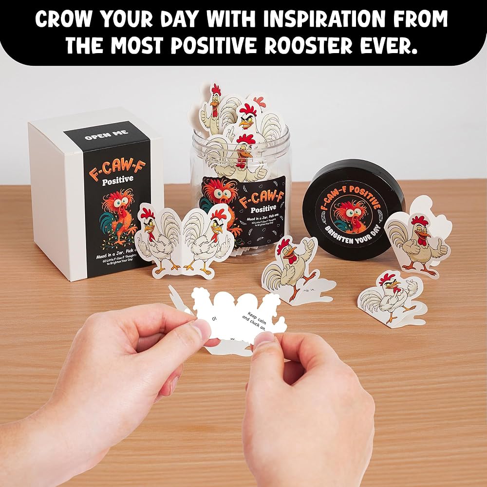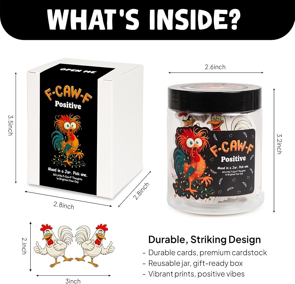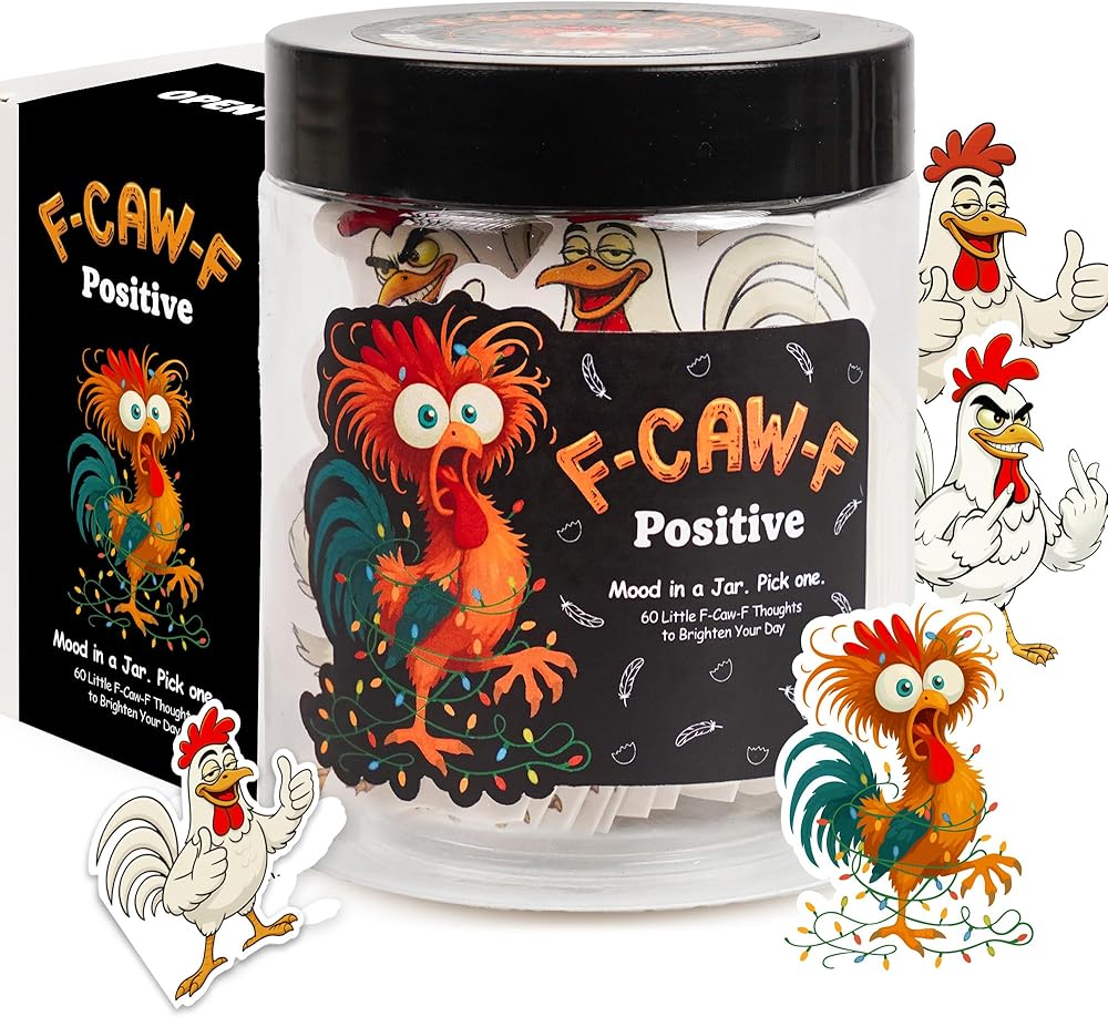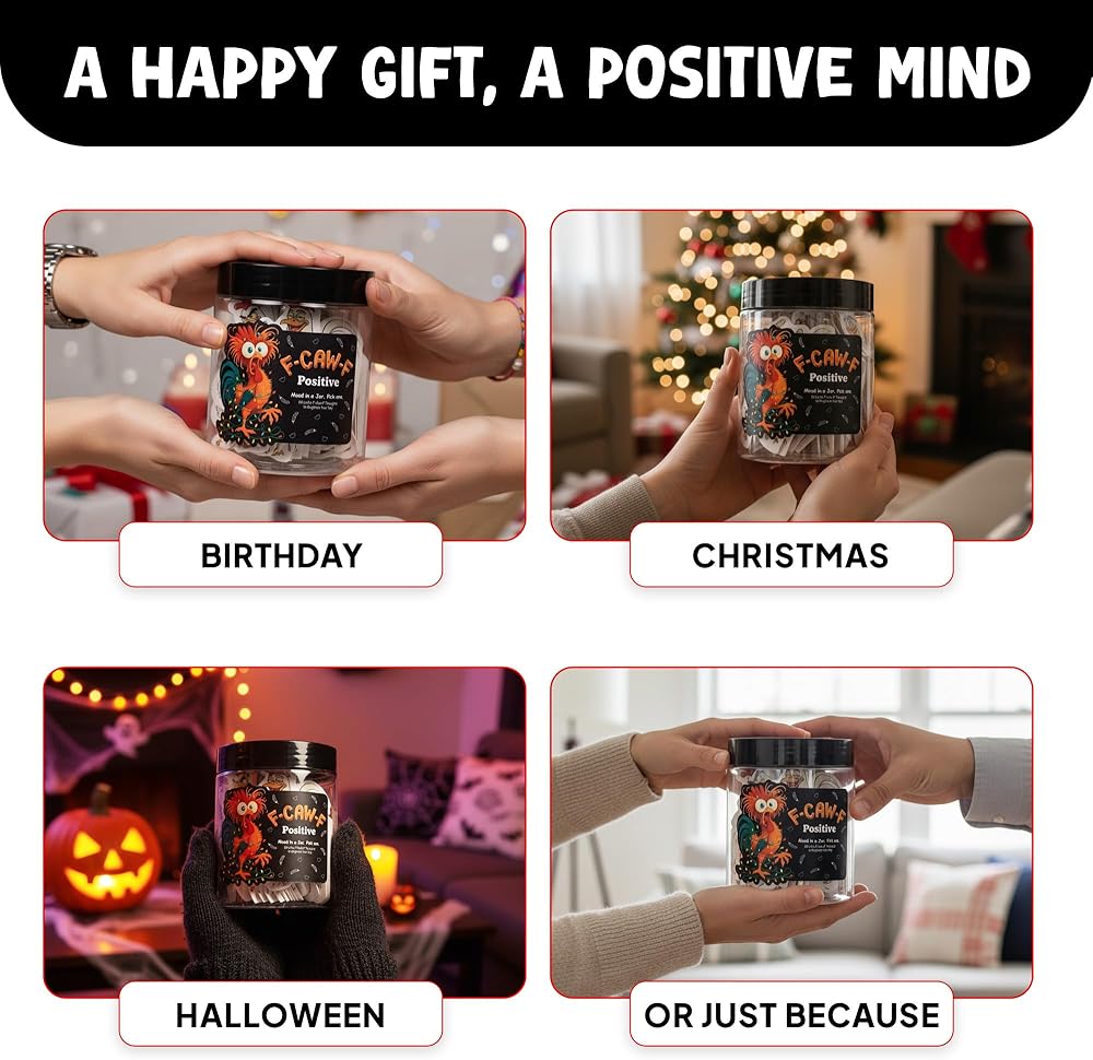 Positive F Caw F Jar with 60 Daily Affirmation Cards, F-Caw-F Gifts for Teens, White Elephant Gifts, Christmas Stocking Stuffer for Teen Girls, Teen Boys, Women, Men, Coworkers, Friends
