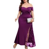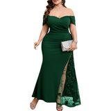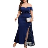 Curve Flattering Design: Thoughtfully designed for plus size women, this prom dress features a tailored fit that beautifully enhances natural curves. The mermaid skirt with ruching at the waist and abdomen not only accentuates the figure but also provides a slimming effect for a confident look. The high slit, paired with mesh detailing, highlights the leg lines while creating a subtle, elegant allure.