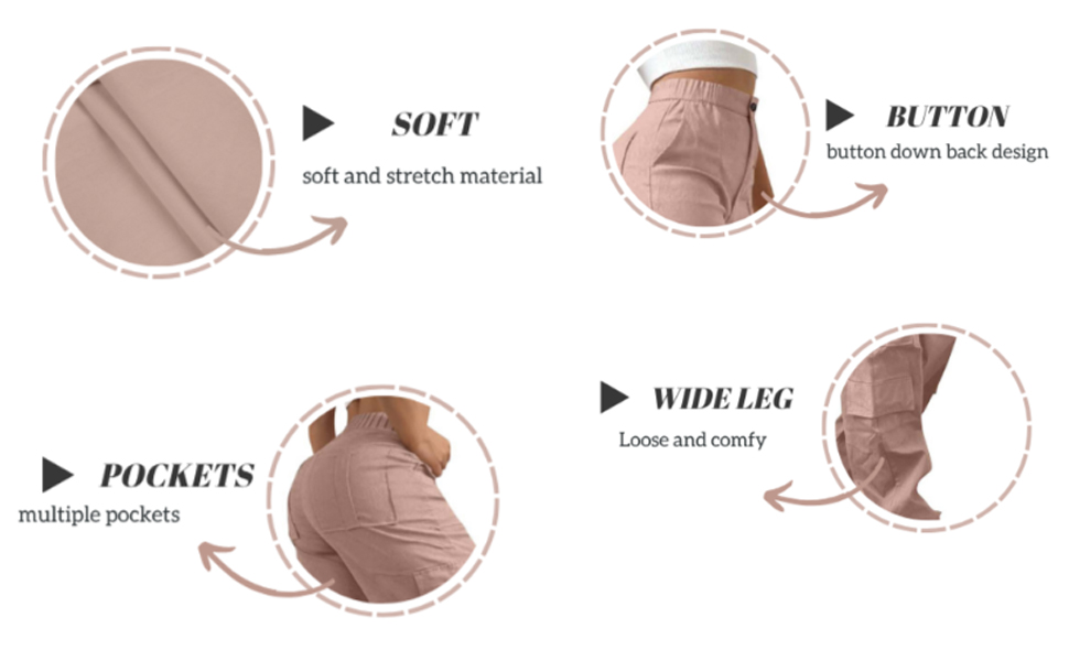 QUALITY MATERIAL: Cargo pants women, Soft, breathable fabric blend provides comfort and durability for all-day wear. Stretchy fabric blend offers excellent mobility and shape retention for yoga, lounging, or everyday activities