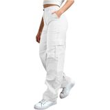 VERSATILE DESIGN: Womens cargo pants, elastic waistband style with button zipper ensures a secure. Wide leg yoga cargo pants featuring convenient side pockets and decorative button details for both athletic and casual wear. Flattering bootcut silhouette with contrast stitching and functional button accents on cargo pockets