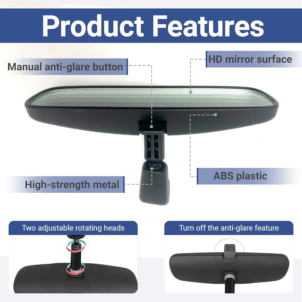 ◇Durable and reliable: The frame and main structure of the rearview mirror are crafted from durable ABS plastic, offering excellent impact resistance and stability. It effectively protects the mirror surface from damage