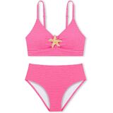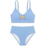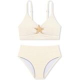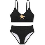 Stylish & Supportive Design: Our girls bathing suit, trendy V-neck bikini top adorned with a metallic starfish accent. For girls aged 9 and above, the top includes removable chest padded for added support, adjustable shoulder straps ensure a secure and customized fit. The high-waisted, ruched bottom offers full coverage for the hips.