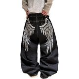 【Wings Pattern Jeans】Men's jeans stands out with its unique printed large wings pattern on the back pockets, adding a cool, personalized touch to classic denim. Designed with a modern wide leg fit, it ensures comfort and freedom of movement.