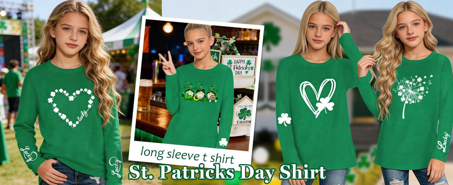 Quality for All-Day Wear: Designed as a durable long sleeve st patrick day t shirt for girl, it ensures comfort during exploration and fun. A must-have st patrick shirt for girls that combines style, softness, and holiday cheer