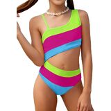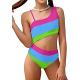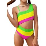 Featuring a trendy one-shoulder design, sleeveless style, and bright neon color, this girls' swimsuit combines playful fashion with all-day comfort. Whether she's diving into the pool or playing on the beach, she'll feel confident, stylish, and free to move.