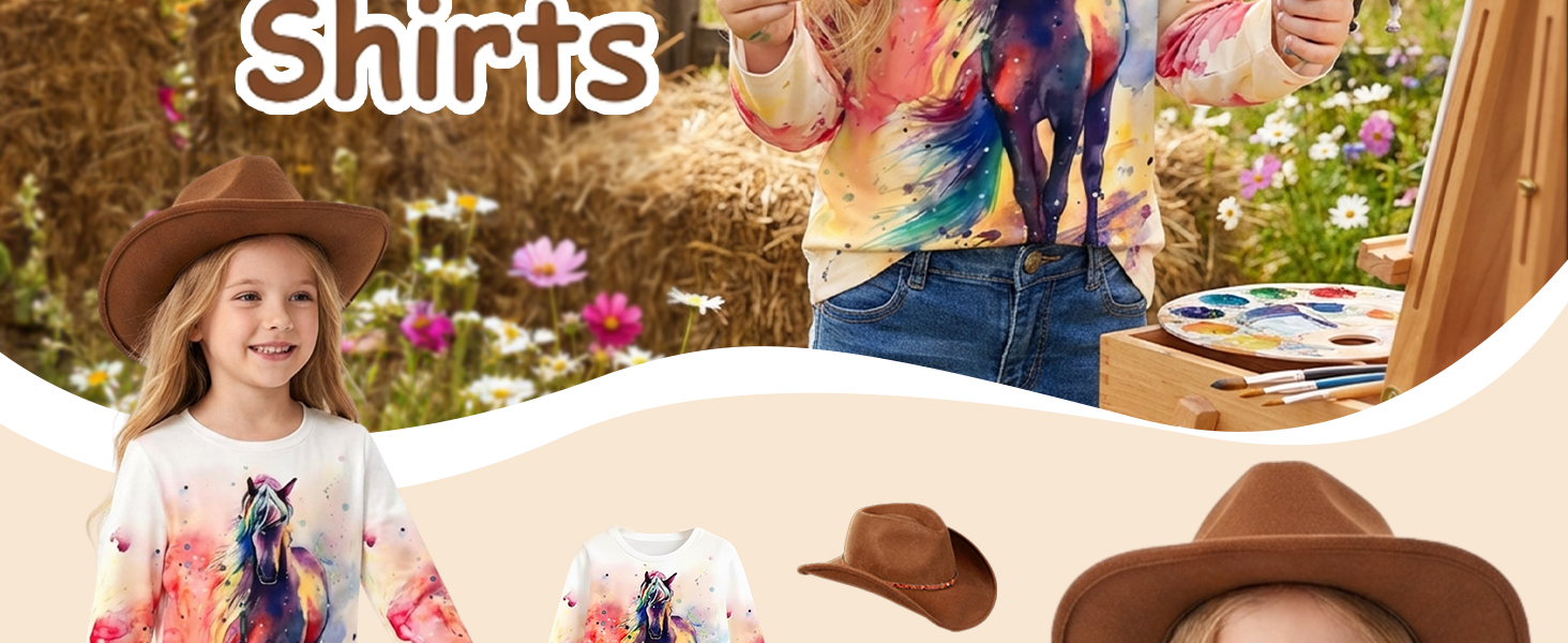🌞 Soft Kid-Friendly Fabric: Crafted with breathable knit fabric gentle on sensitive skin — keeps kids comfy through playtime or all-day outings, while the vivid horse print resists fading for active cowgirls.