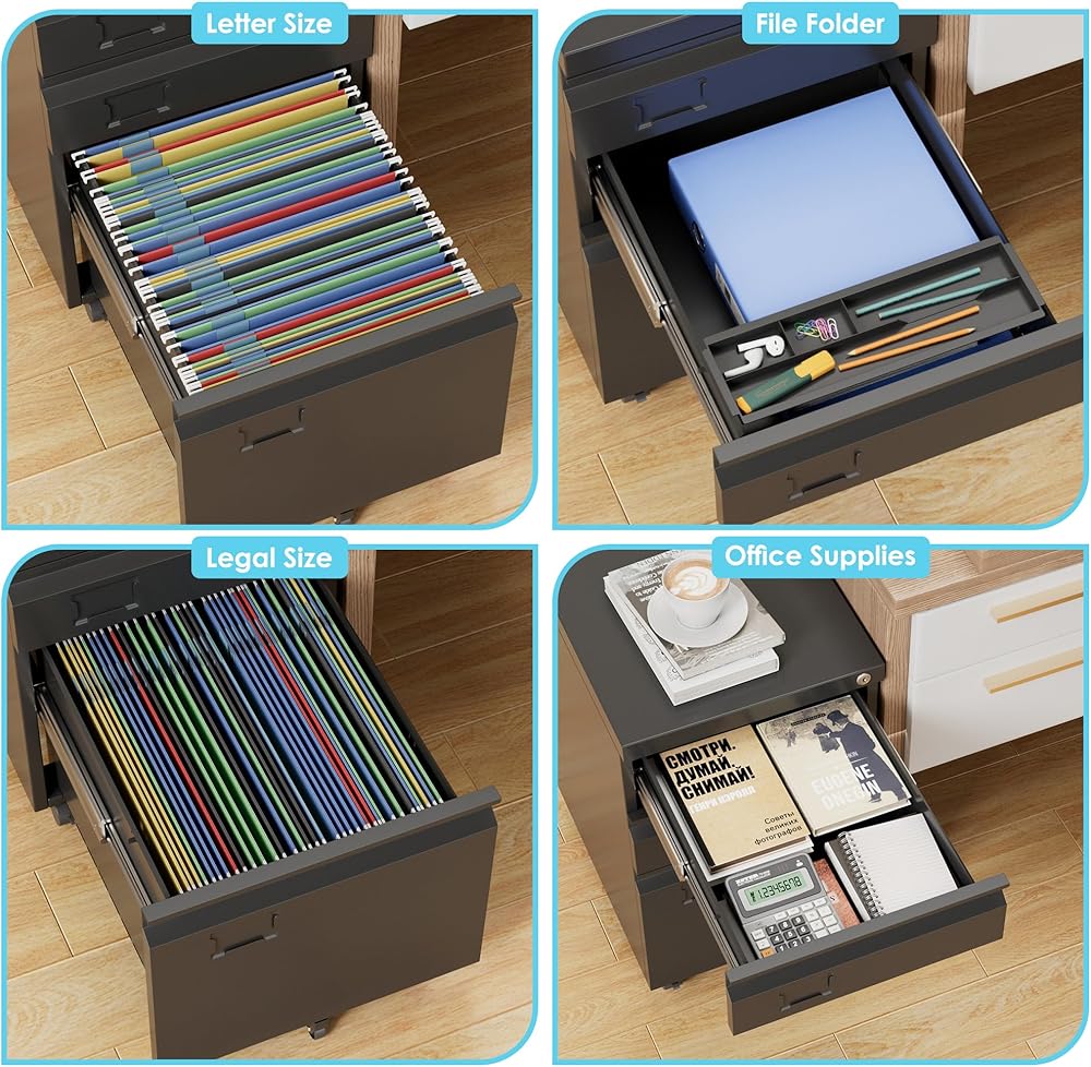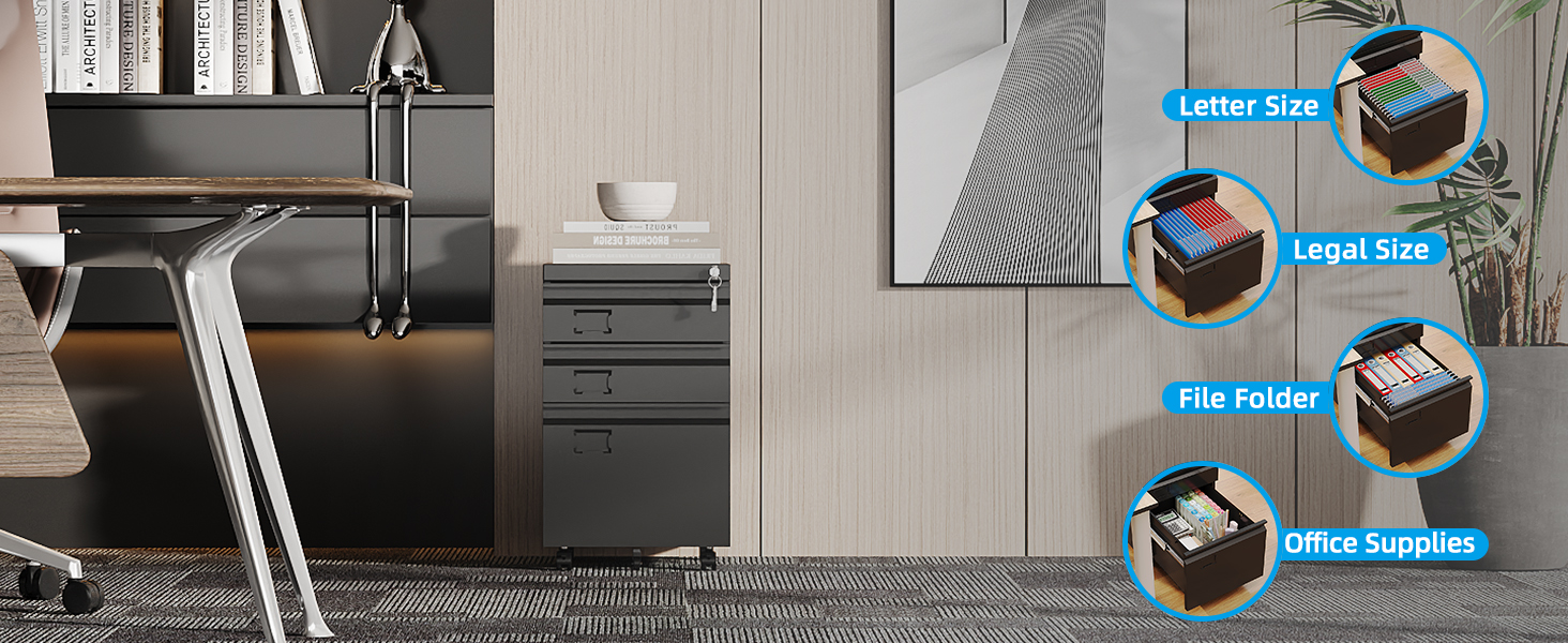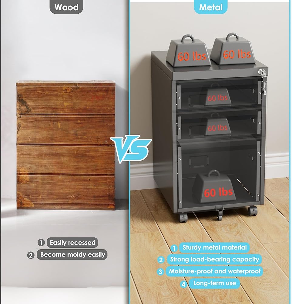 【Sturdy】: Made from high-quality steel, 3 drawer file cabinet with wheels can withstand long-term use without worrying about deformation or damage.