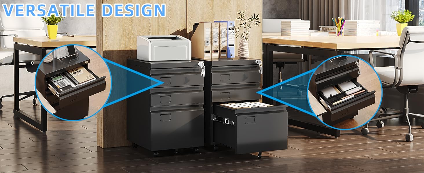 【Add More Mobility】:3 drawer office file cabinet arrives with five casters, including two front casters with braking function and one center caster to prevent tipping.