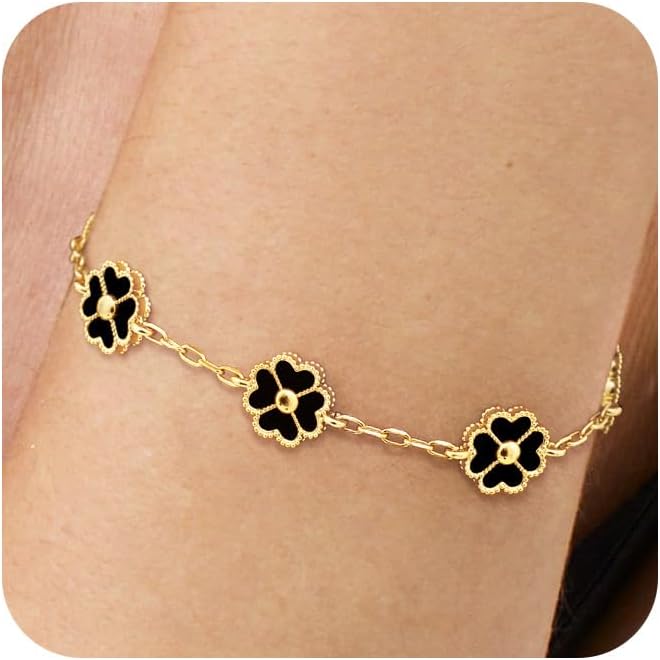 【PREMIUM MATERIALS】Finished with 14K gold plating, this clover bracelet is lead-free, nickel-free, and hypoallergenic for comfortable all-day wear. It's a reliable choice for daily styling, party, vacations, summer beach outings, or other activities. Beauty you can trust, day after day