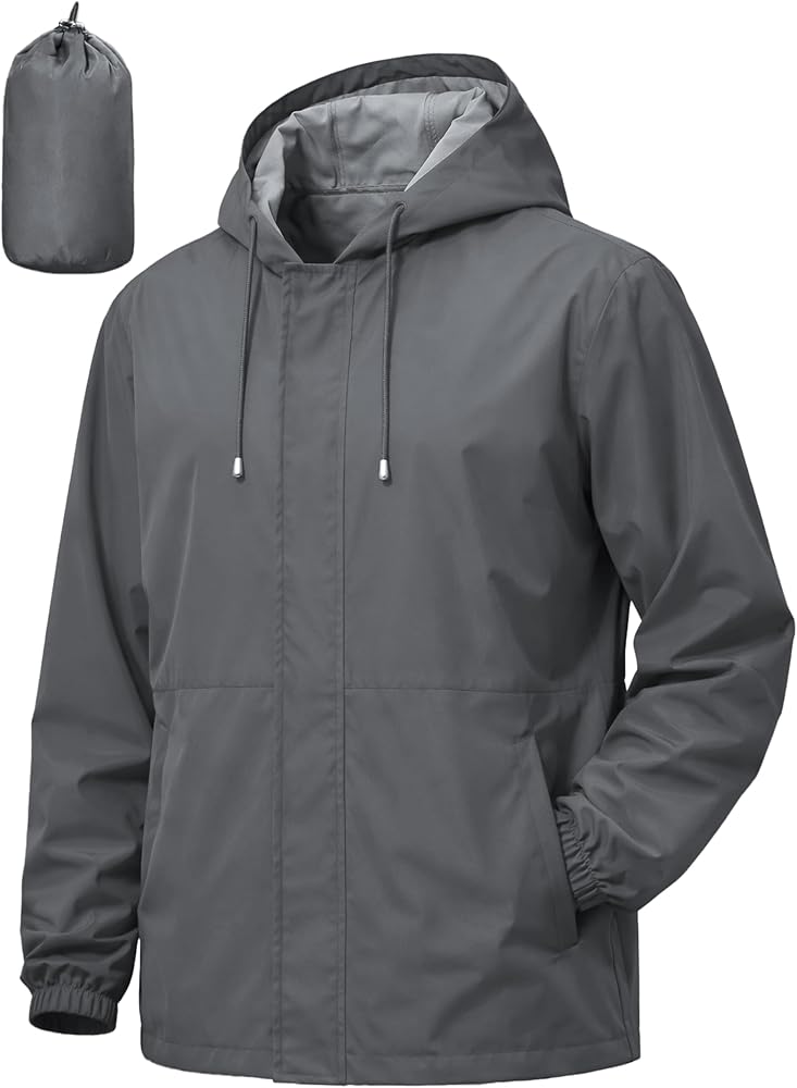 Waterproof & Windproof Fabric – Made from 100% polyester, this rain jacket men features durable waterproof and windproof material that helps keep you dry and protected in rainy, windy outdoor conditions.