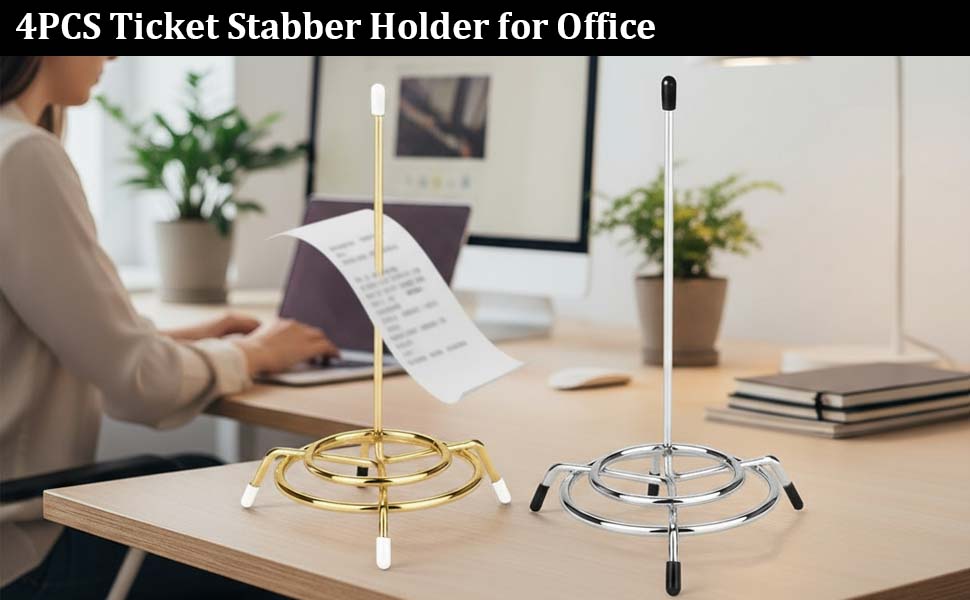 Safety and Stability with Rubber Tip Caps: Each ticket holder comes with a rubber safety cap on the tip to protect you and your employees from sharp edges. The round, spiral base adds stability, ensuring that the receipt holder stays securely in place without tipping over.