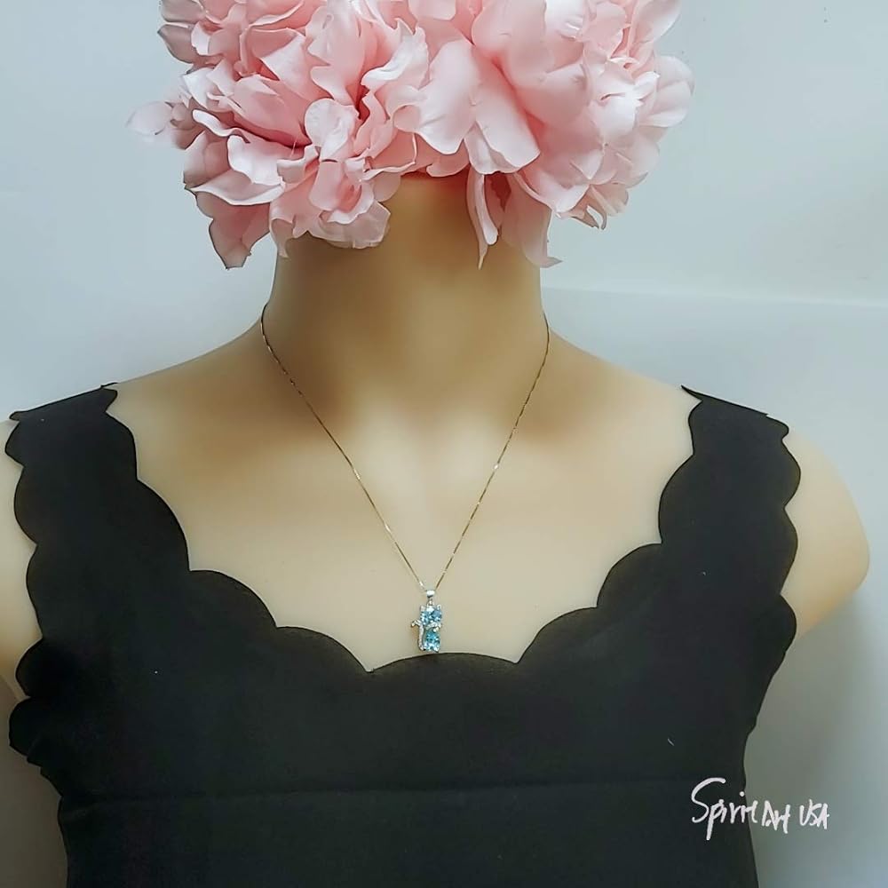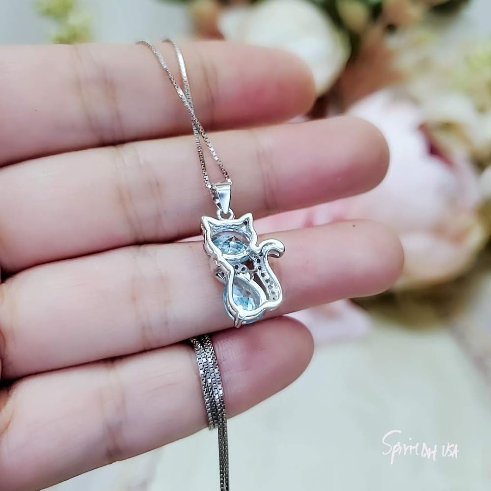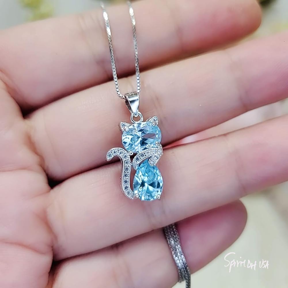 Aquamarine Cat Necklace adjustable Chain from 16" ~20"