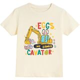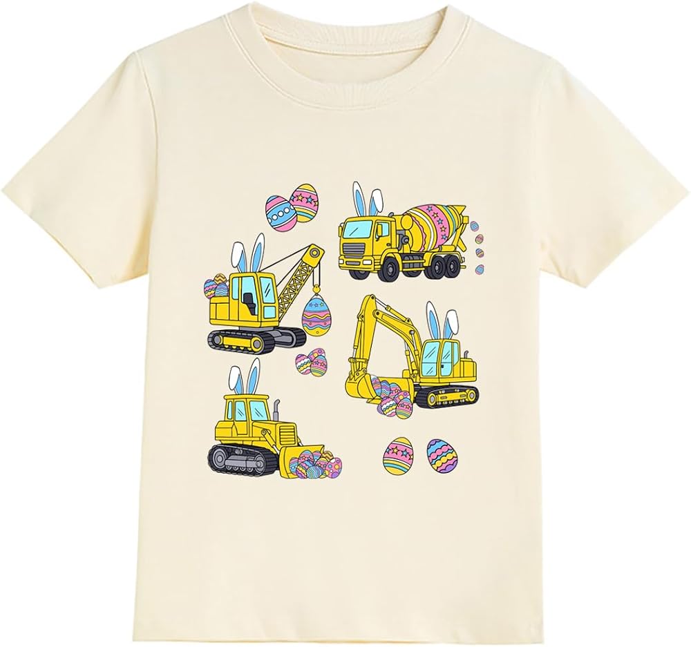 Easter Themed & Boy-Loved Designs: Celebrate the season with unique Easter charm! This toddler boys Easter excavator T-shirt combines construction trucks, eggs, and bunnies in vibrant prints. It's a festive and eye-catching addition to any Easter outfit, perfect for holiday photos and spring gatherings.