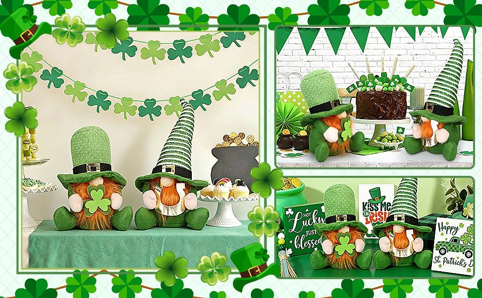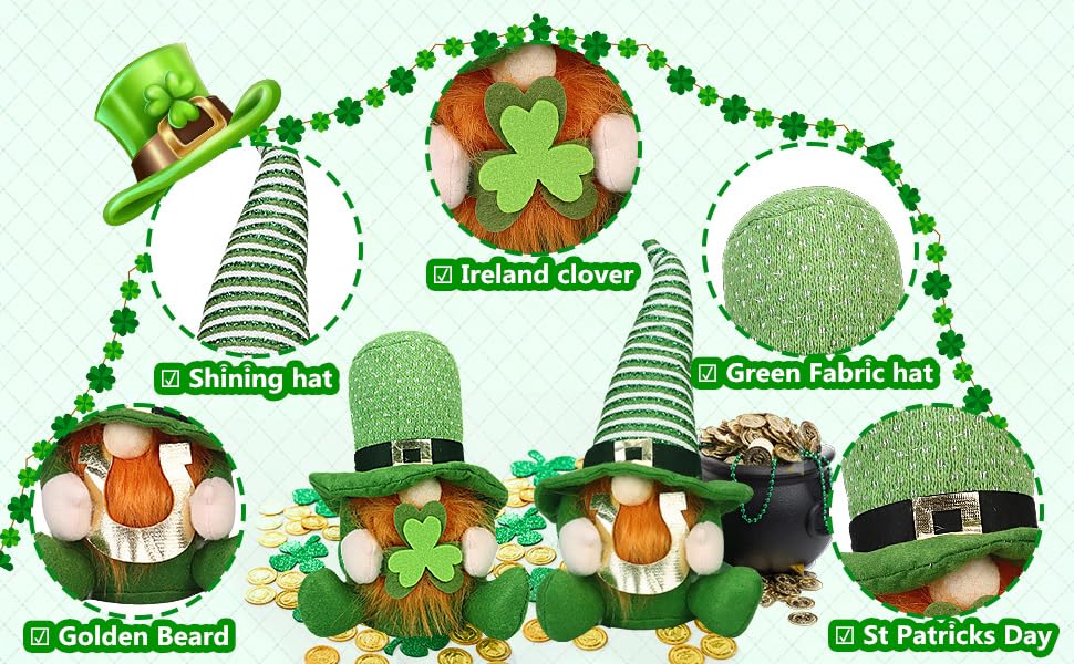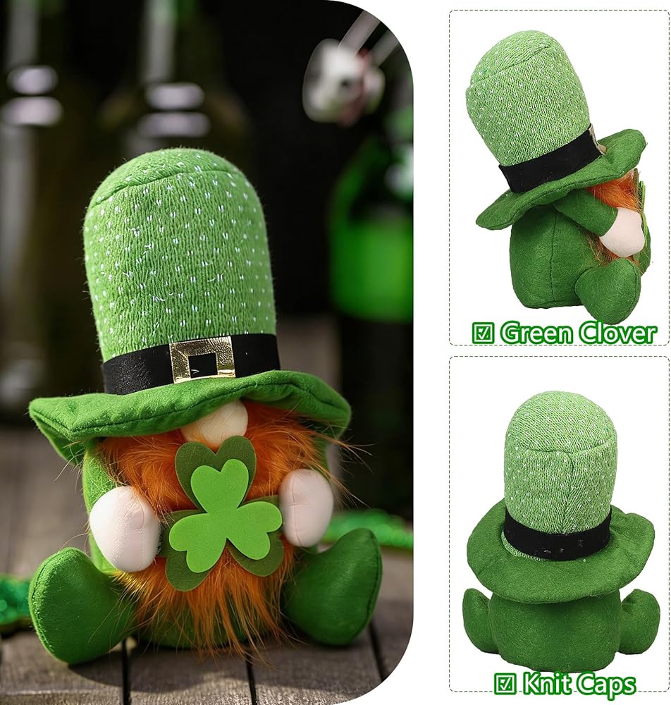 St Patrick's Day Gnomes Plush: Traditional folklore gnome, serving as a home protector and good luck charm. st patricks day decorations Features a festive green design with shamrock accents.