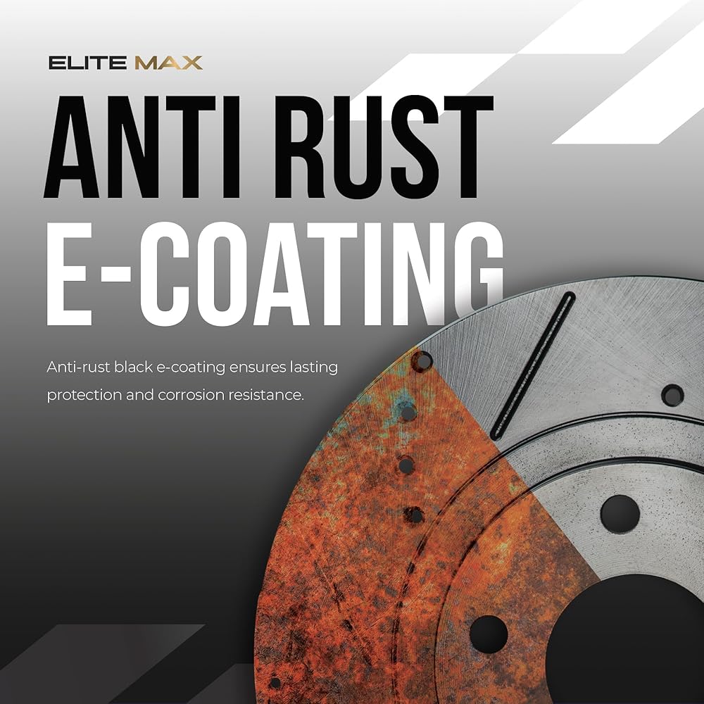 Ultimate Stopping Power: Directional slots improve pad bite and eject water, gas, and debris during heavy-load braking. Cross-drilling enhances airflow to heat reduction. Black e-coating defends rotors against salt, moisture, and corrosion buildup, keeping them clean behind open wheels.