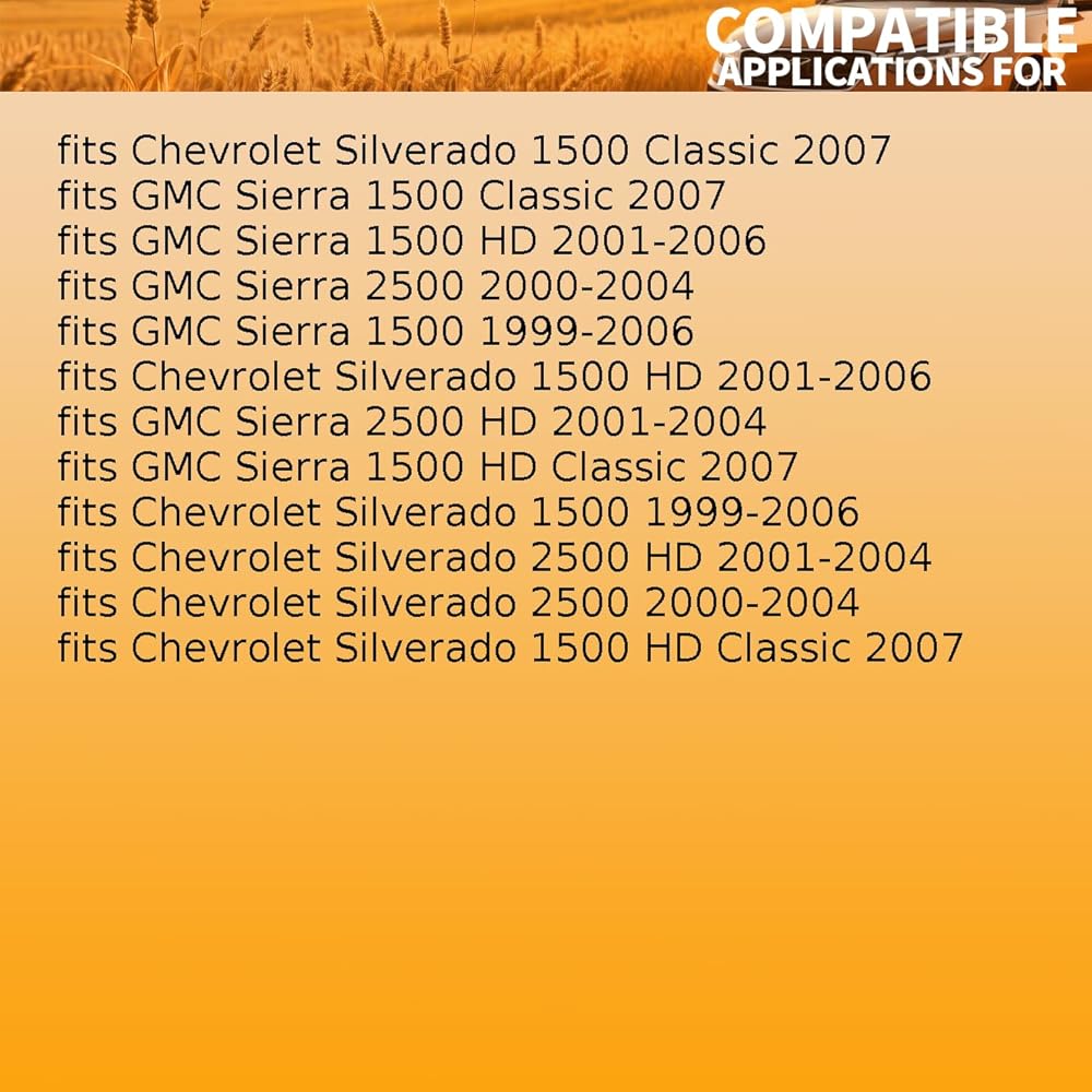 Fitment1: Torsion Bar Mount fits Chevrolet Silverado 1500 1999-2006 fits Chevrolet Silverado 1500 Classic 2007 fits Chevrolet Silverado 1500 HD 2001-2006 fits Chevrolet Silverado 1500 HD Classic 2007 fits Chevrolet Silverado 2500 2000-2004 fits Chevrolet Silverado 2500 HD 2001-2004 fits GMC Sierra 1500 1999-2006 fits GMC Sierra 1500 Classic 2007 fits GMC Sierra 1500 HD 2001-2006 fits GMC Sierra 1500 HD Classic 2007