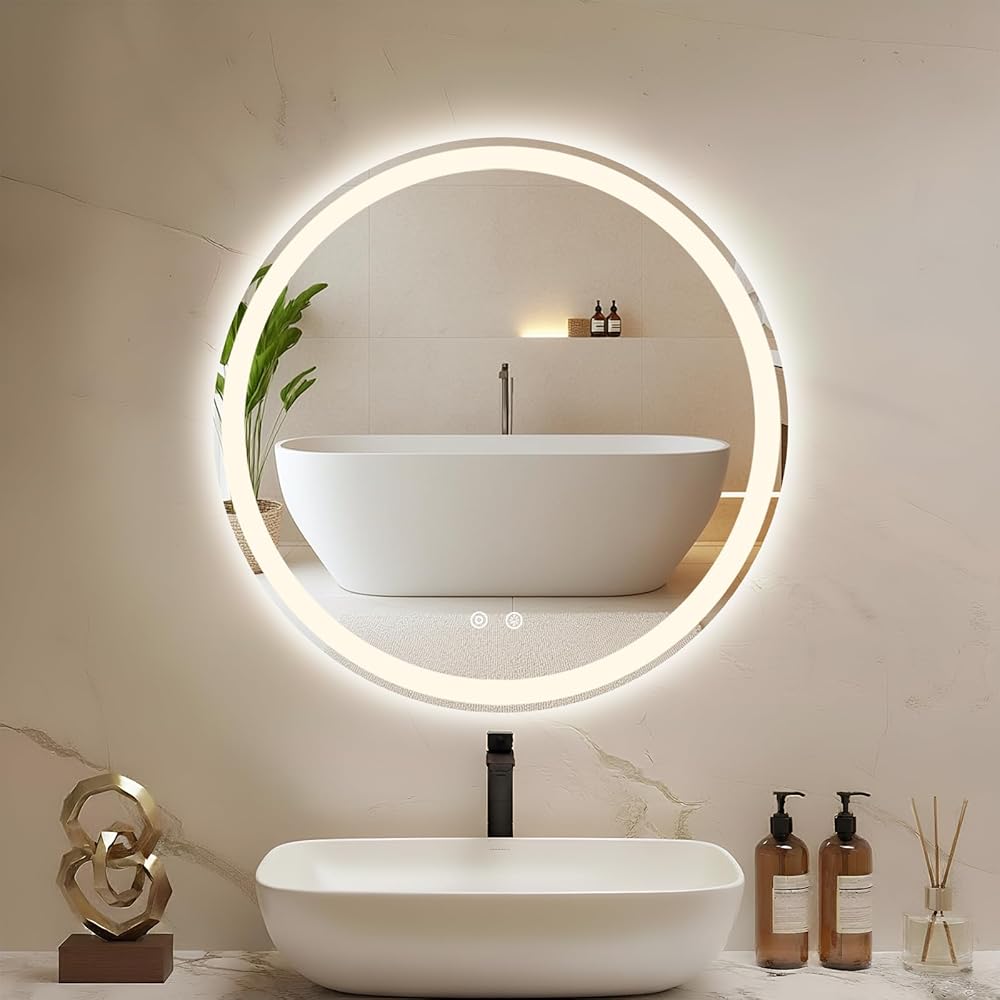 [Elegant Round Bathroom Mirror]Featuring a classic circular design and a seamless LED light ring, this LED vanity mirror delivers a clean, modern look and provides perfectly even, shadow-free lighting. It's an ideal addition to any bathroom or vanity for tasks like makeup and grooming, blending stylish form with practical function.