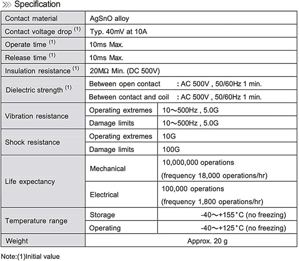 Ultra Micro ISO Automotive relay. High Rating up to 20A. 12 VDC Contact Form:SPST (1 Form A) Power Consumption: 960 mW High Temperature withstand up to 125 ambient. General Purpose for Automotive applications.