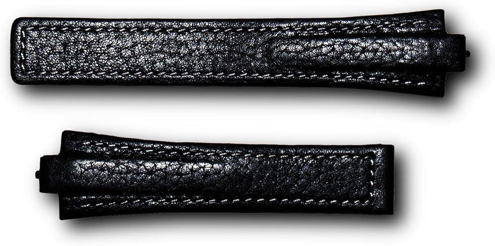 A black buffalo grain leather watchband with white stitching to fit TAG Heuer Kirium gents watch models listed.