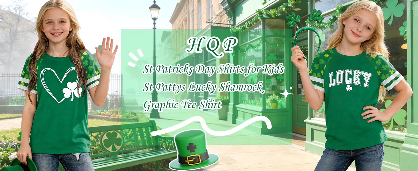 Features: This children's lucky Irish shirt features a cute shamrock and lucky letter pattern, and more. Girl Shamrock Graphic Shirts, St. Patty's shirts for kids. Let your child immerse themselves in the festive atmosphere and receive countless compliments.