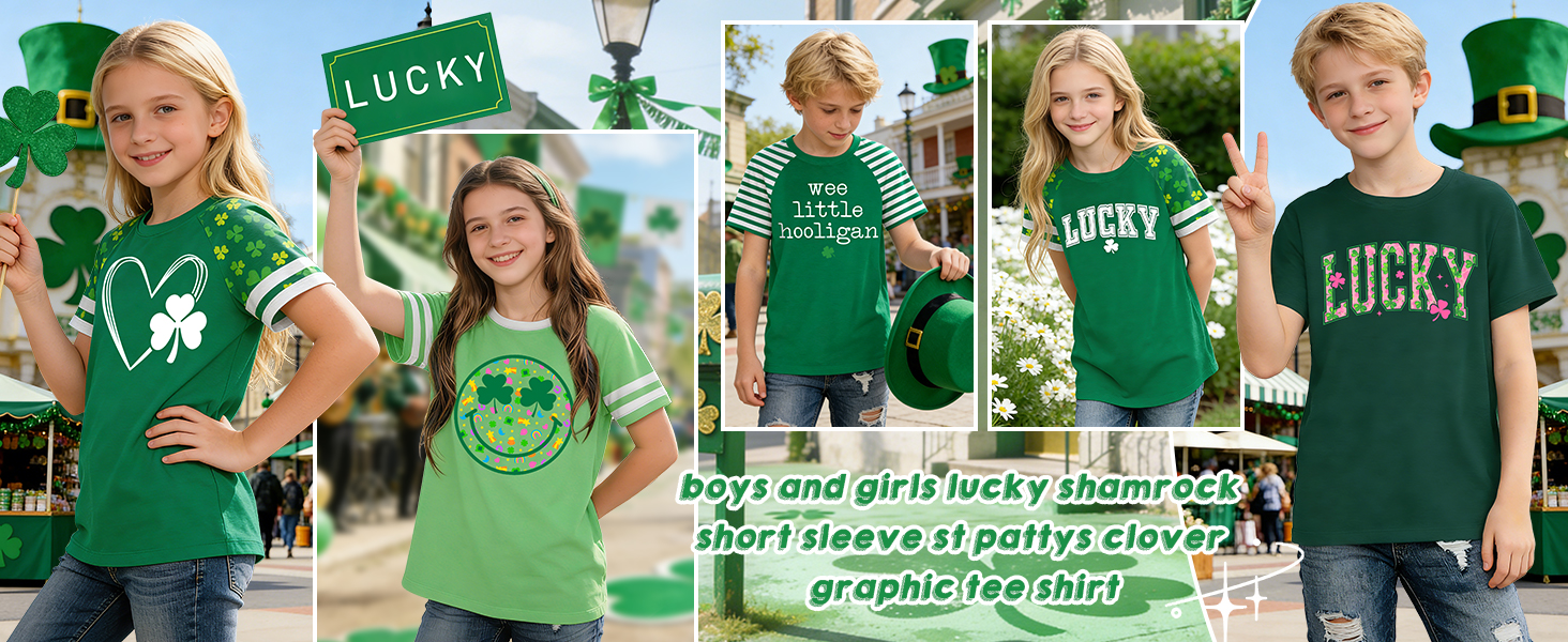 Size: This cute shamrock graphic short-sleeved shirt is suitable for children aged 5-14. Children's St. Patrick's Day clothing is a great way for kids to show their Irish pride during St. Patrick's Day celebrations.