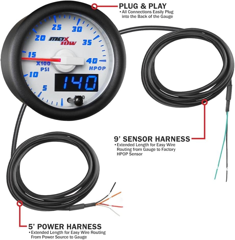 MaxTow High Pressure Oil Pressure Gauge Measures & Displays the High Pressure that Enters the Oil Pumps of your 6.0L or 7.3L Power Stroke Diesel Engine