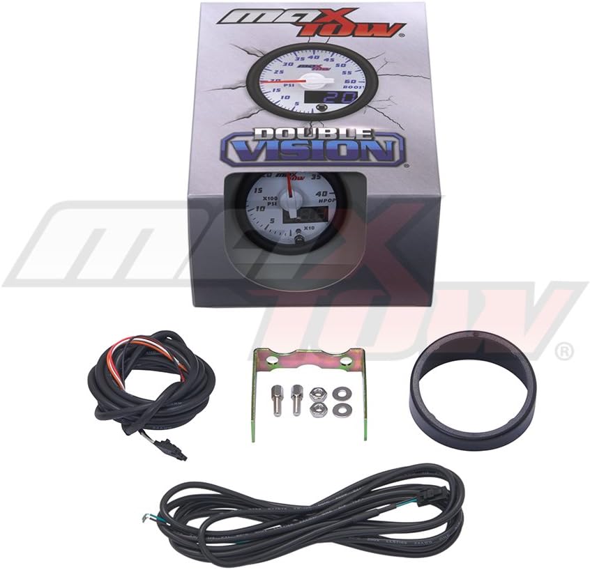 MaxTow Double Vision 4,000 PSI High Pressure Oil Pressure HPOP Gauge - Compatible with Power Stroke Diesel Engines 1994-2003 7.3L & 2003-2007 6.0L - White Gauge Face - Blue LED Dial - 2-1/16" 52mm