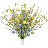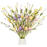 Information about easter floral picks:Drawing inspiration from colorful Easter eggs, your Farmhouse Easter flowers feature 12 vibrant egg picks in purple, green, yellow, and pink. Their cheerful hues instantly lift the atmosphere of any quiet room, infusing your home with festive delight
