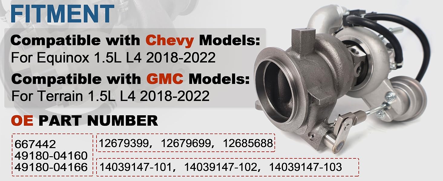 Compatible Vehicles: for Chevy Equinox 2018-2022 1.5L L4 Engine, for GMC Terrain 2018-2022 1.5L L4 Engine. Please make sure the part is compatible with your vehicle