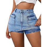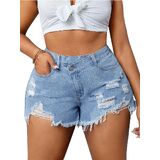 Upgrade your style with these ALLABREVE Plus Size Denim Shorts. Featuring a chic button-front, practical pockets, and a solid color design, they offer a flattering fit. Great for festivals, beach vacations, or casual autumn outfits.