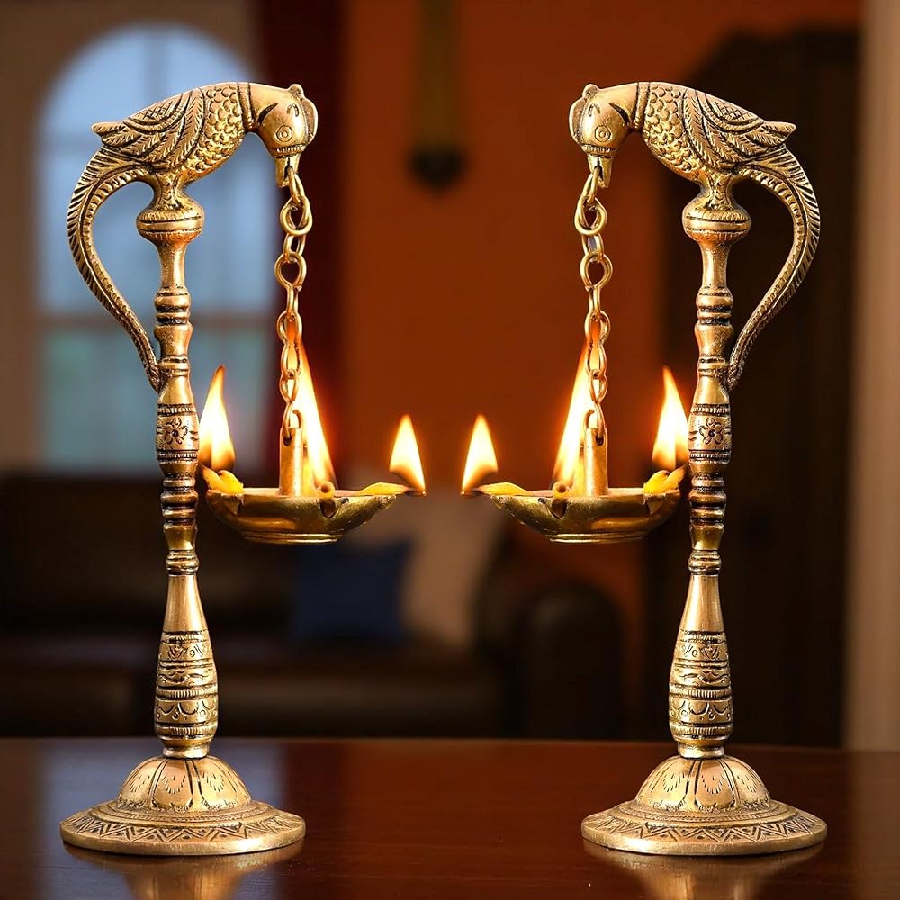 • Symbol of Auspiciousness and Prosperity - These Parrot Brass Oil Diyas are not only beautiful but also hold great spiritual significance in Hindu culture. The parrot symbolizes communication and affection, while the diya lamp brings light to darkness, promoting prosperity, positivity, and good luck. Ideal for Diwali, weddings, and religious ceremonies, these diyas make meaningful gifts that spread joy and blessings.
