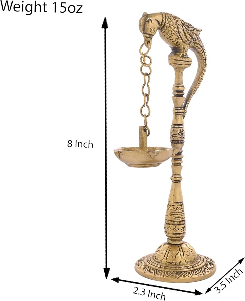 Features to Cherish: Embrace Tradition: Crafted from solid brass, these diyas carry the elegance of traditional Indian design, embodying spiritual illumination. Symbolic and Sacred: The pair of diyas features a graceful parrot motif, symbolizing guidance and wisdom in sacred ceremonies. Versatile Elegance: With a 1.8-inch diameter and 7.5-inch height, these oil lamps fit perfectly on altars, tables, or as festive centerpieces, infusing warmth into any space. Cultural Craftsmanship: Handmade by skilled artisans, the diyas include traditional touches like cotton wicks and are perfect for Diwali and other festive occasions. Durable Beauty: Polished brass ensures longevity. With gentle care, these diyas can shine for generations, preserving their radiant glow.