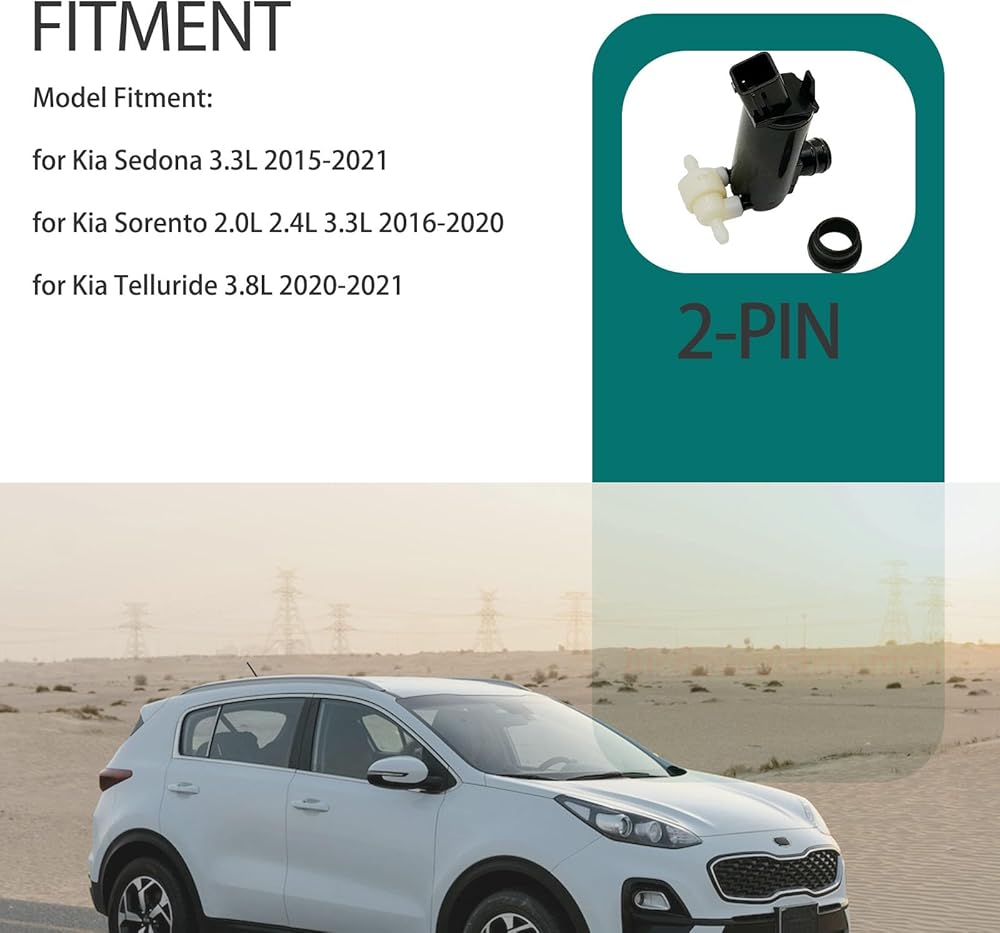 Model Fitment: Washer Pump for Kia Sedona 3.3L 2015-2021, for Kia Sorento 2.0L 2.4L 3.3L 2016-2020, for Kia Telluride 3.8L 2020-2021