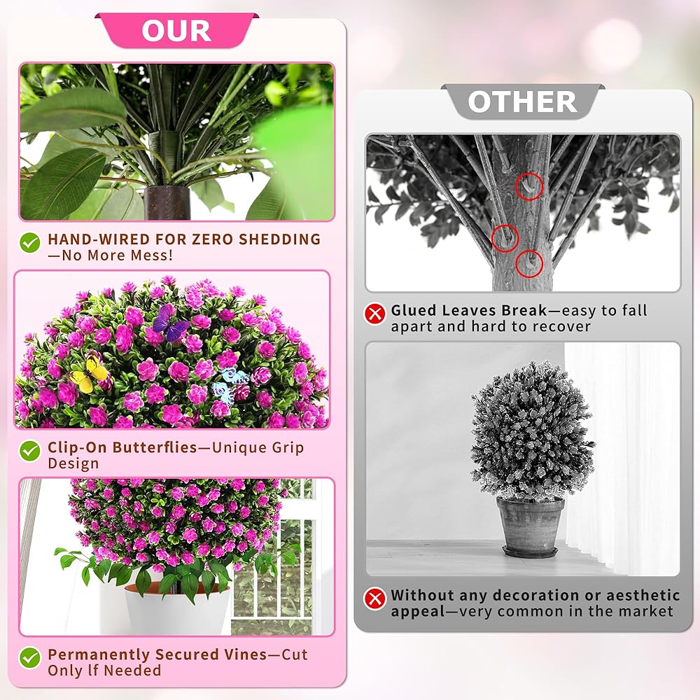 【Exclusive Nature-Inspired Design】 Stand out with TONAHUTU 28" UV-resistant faux topiary, the ONLY fake boxwood plants featuring lifelike faux vines and delicate fake butterfly ornaments. Crafted with premium silk foliage and reinforced polyethylene stems, ideal for instant porch decor or blending with real plants in your outdoor garden