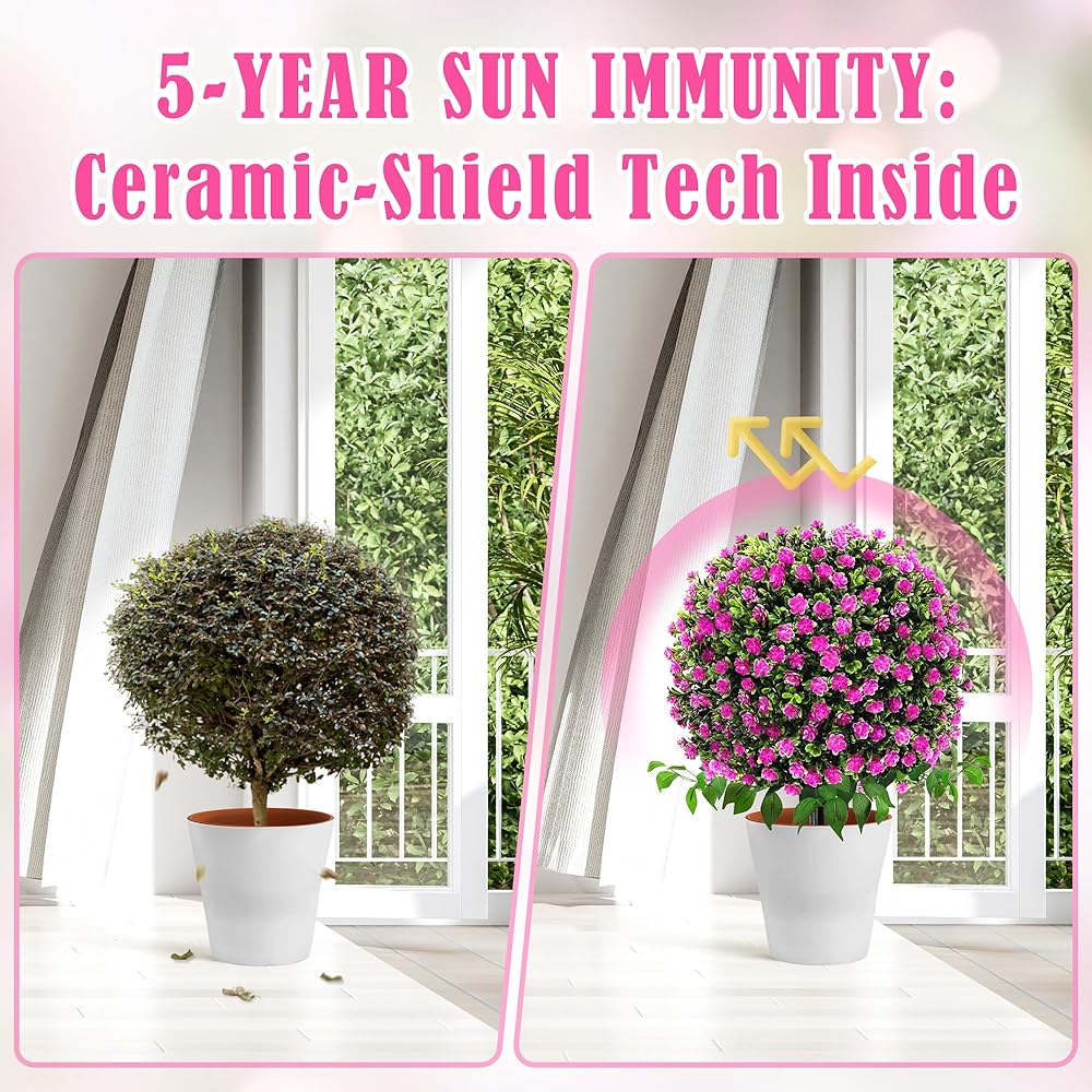 【Zero Maintenance & Self-Renewing】 Thrives indefinitely without water, pruning, or sunlight. This topiary trees artificial outdoor with Dust-resistant polyester leaves retain shape year-round. Bend and reshape the stems to create custom arches or layered designs, combining with other artificial plants for dynamic, lush depth in front porch displays
