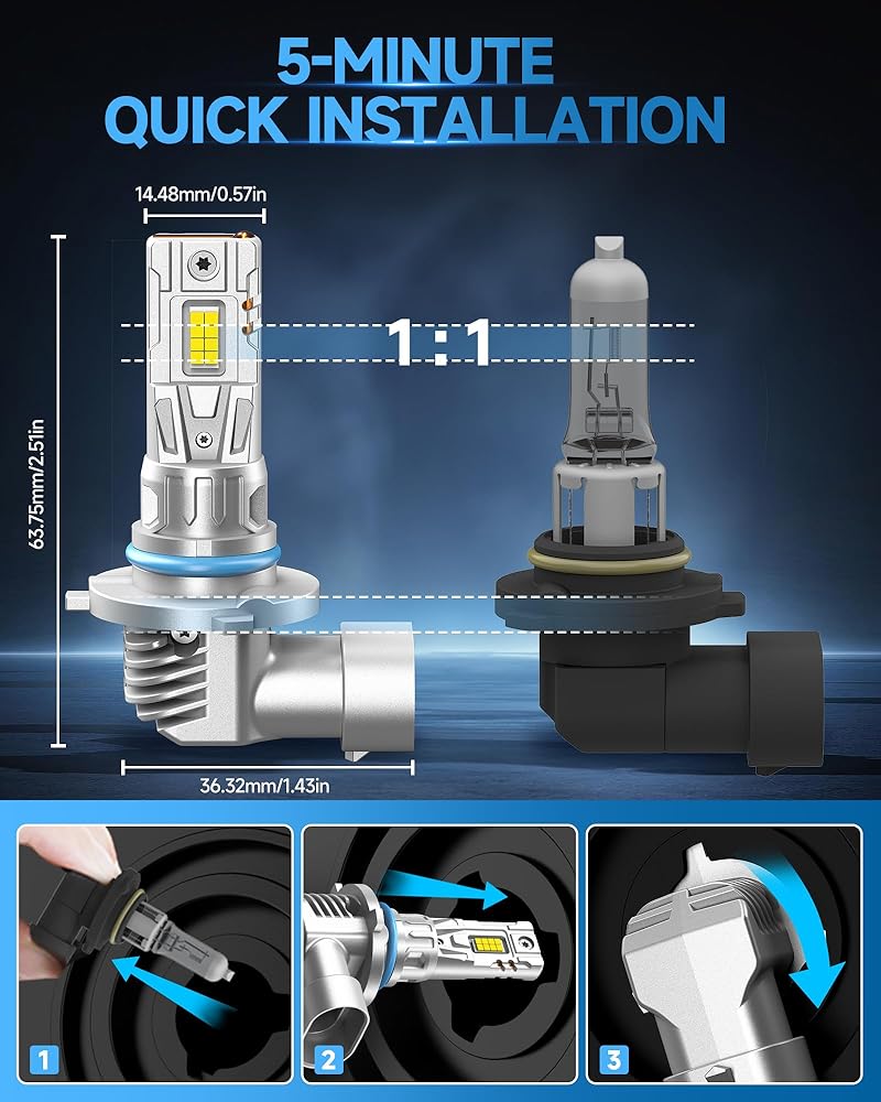 【5 Minutes Quick Installation】9145 fog light bulb 1:1 size original car halogen fog bulb design, plug and play, installation is very simple, no need to change the wiring, so you don't need to go to the auto repair shop, you can complete the installation in 5 minutes at the fastest