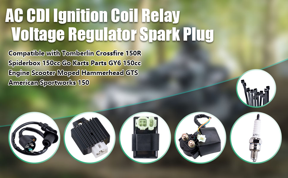 AC CDI Ignition Coil Relay Voltage Regulator Spark Plug Compatible with Tomberlin Crossfire 150R Spiderbox 150cc Go Karts Parts GY6 150cc Engine Scooter Moped Hammerhead GTS American Sportworks 150