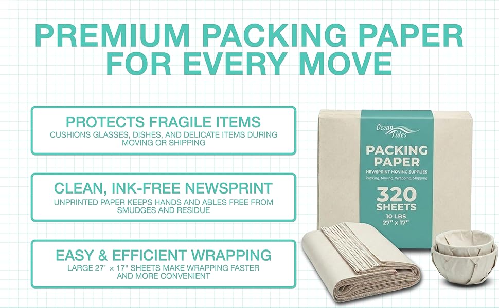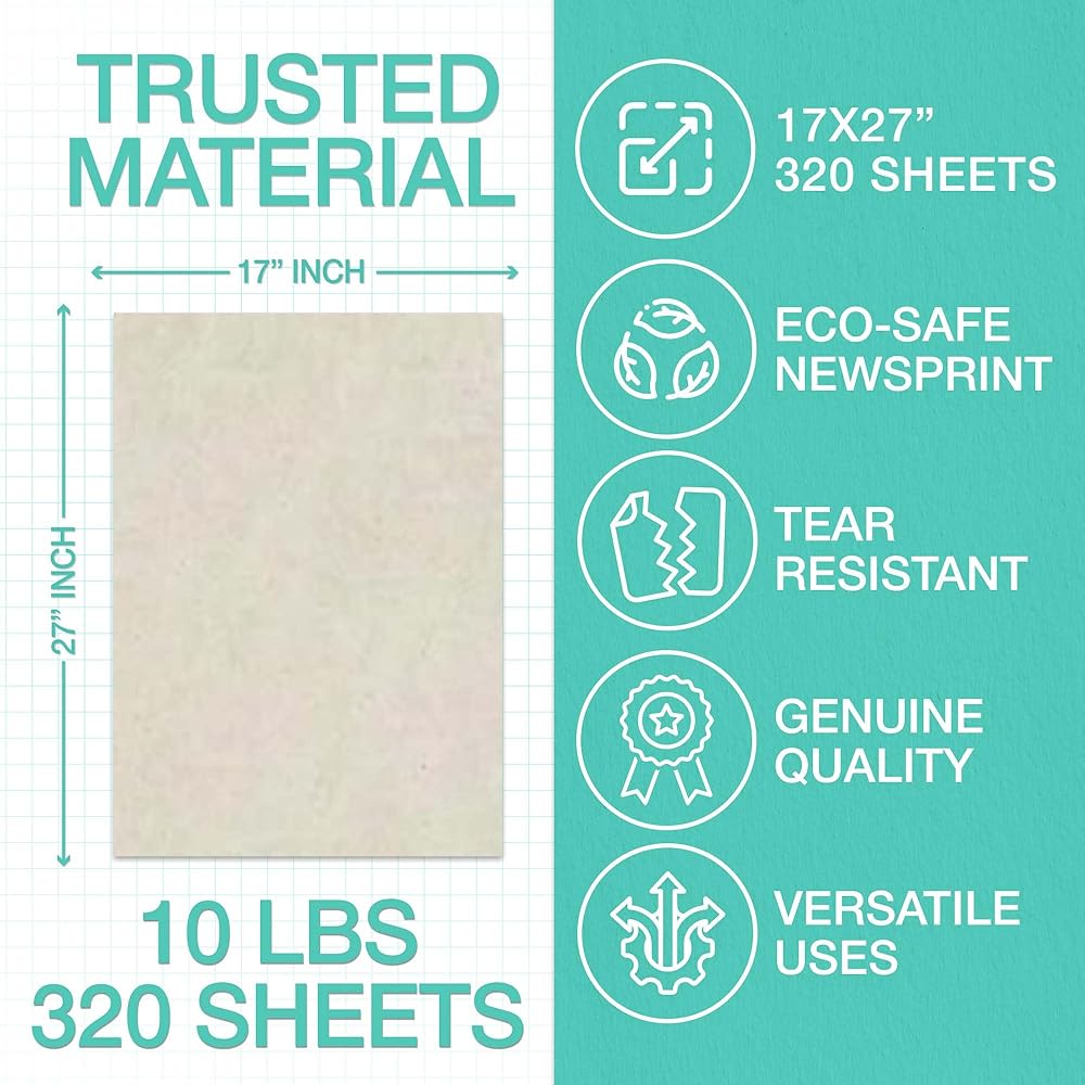 IDEAL WRAPPING FOR FRAGILE ITEMS: These packing paper sheets provides protection for wrapping fragile items during shipping. Made from premium 10lb newsprint, each 27" x 17" sheet is thick enough to cushion glassware, dishes & delicate collectibles.