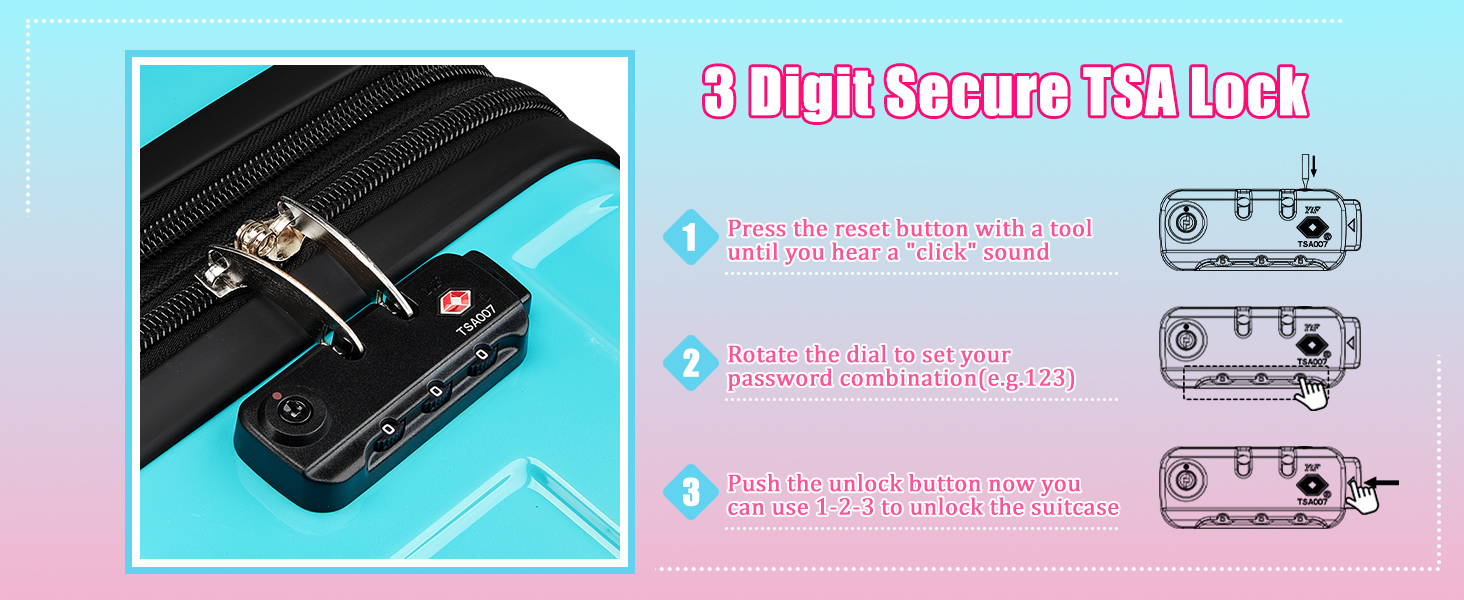 Spinner Wheels: Suitcase with 8 spinner wheels use high flat and straight shock-absorbing universal wheels to make their travel luggage sets quieter and smoother, ensuring 360° free rotation.