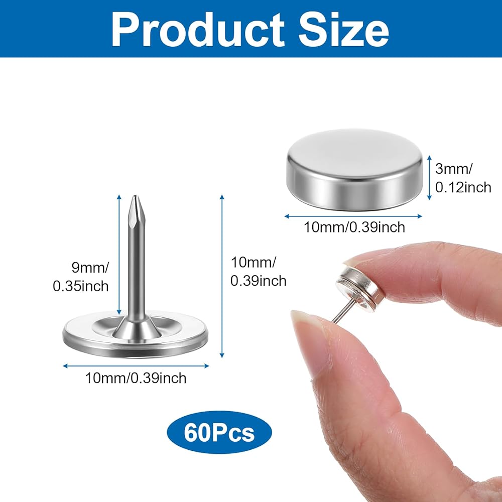 60 x Magnetic Pushpins (60 magnets + 60 nails)