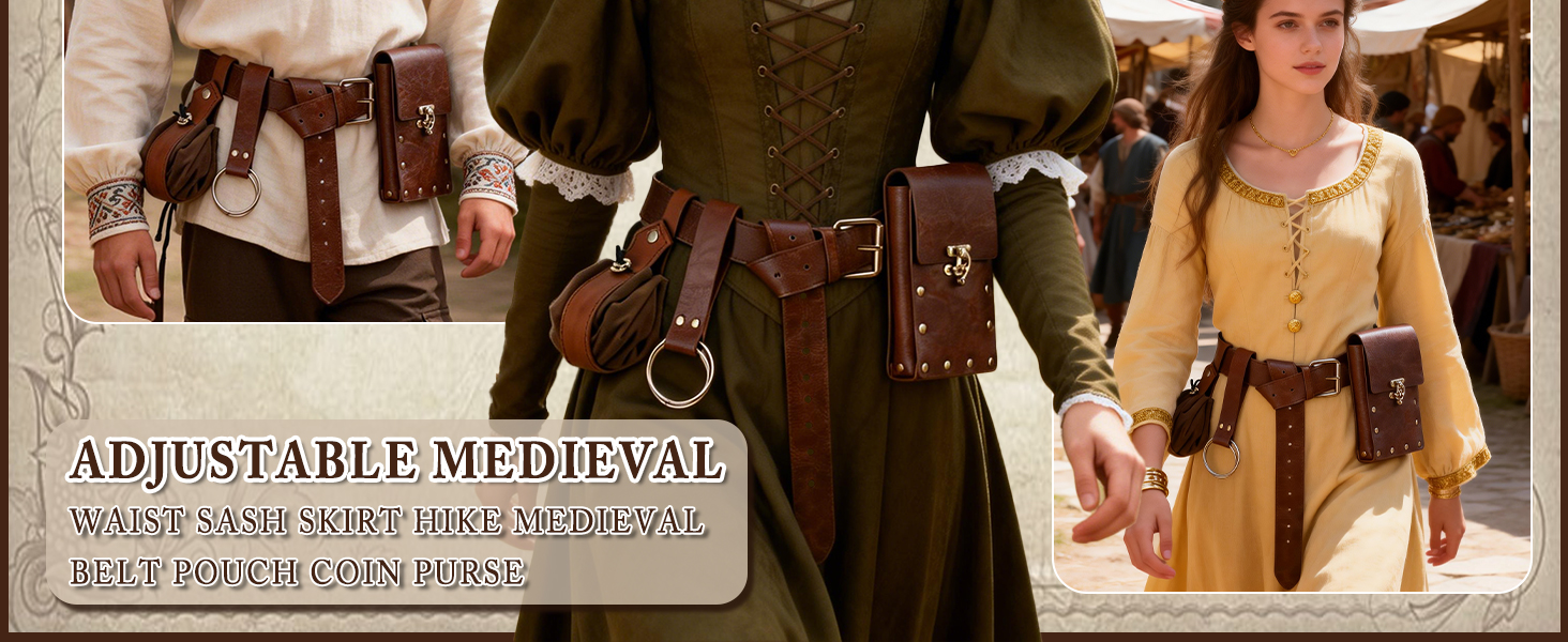 Adjustable Renaissance Belt:Designed with a user-friendly adjustable buckle, our renaissance women' s pouch lets you effortlessly customize the fit to your waist size. With a generous length of 60 inches/152 cm, it offers unbeatable versatility and serves as an essential staple for Halloween costumes, Renaissance fairs, and medieval reenactments alike.