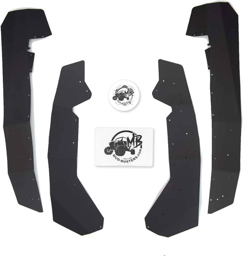 MudBusters max fender flares provide up to 5 inches of additional coverage over stock front fenders; 3 inches of additional coverage in front to middle of rear tires, which tapers up to 7 inches and out over the rear, adding 13 inches more of additional coverage in the rear. Far more coverage than the factory fenders for the Can-Am 2019-2026 Maverick Sport. This complete package offers Maverick Sport front-to-back coverage to take any terrain you and your machine go. Purchase this complete package to leave you and your Maverick Sport less dirty and better protected. Maverick Sport owners love an adventure, and with this machine, you can take on any terrain. Have a more enjoyable ride and cut down clean up time. MudBusters max coverage fender flares recommended for Maverick Sport owners who want the maximum all-around coverage available. MudBusters uses a high-quality material that will take on whatever the day brings, working as hard as you do! MudBusters is a USA-based company that creates jobs here in America where we all like to work and play. When taking on your next adventure, you know the Can-Am Maverick Sport is ready to take on any terrain. Now with MudBusters Can-Am Maverick Sport fender flares, you are too!
