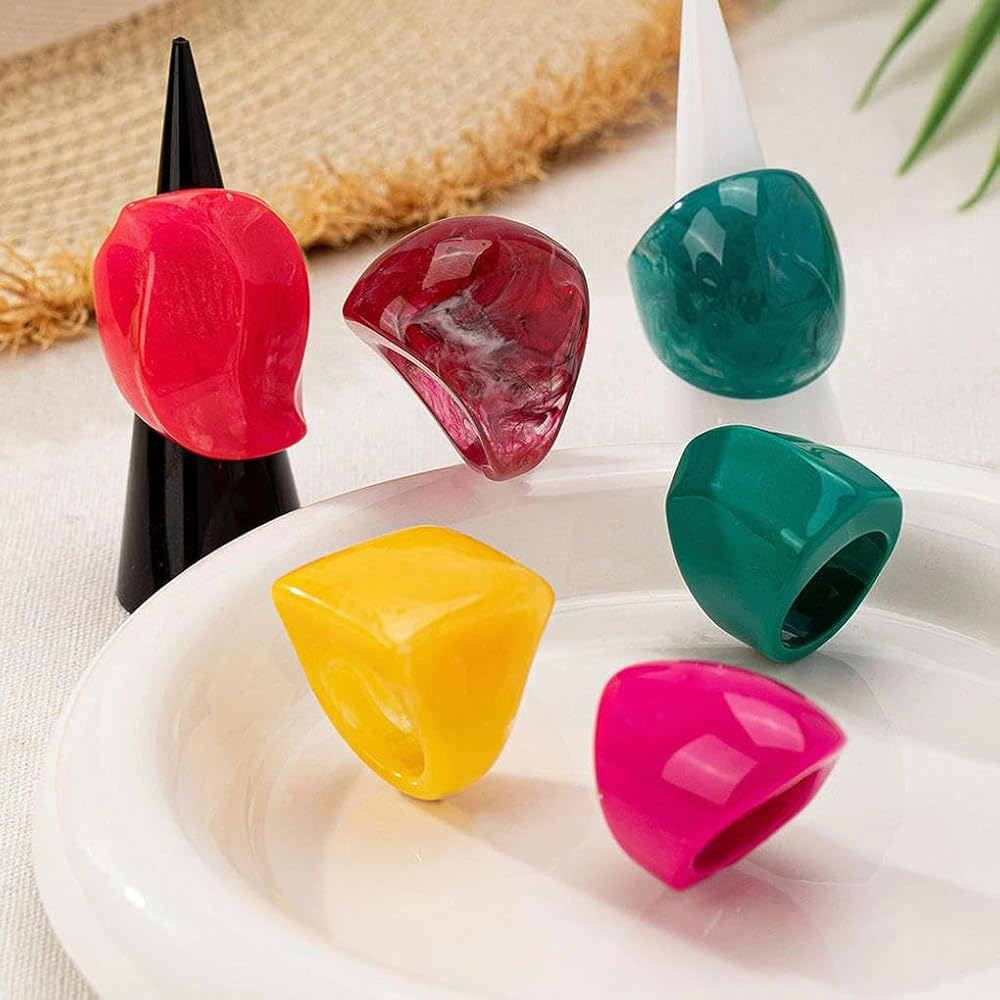 Unique Design: Get ready to unleash your style with these chunky colorful rings. This set features thick, large dome rings made from vibrant acrylic resin that are total head-turners. They are crafted to be the ideal statement piece, for stacking and creating a unique Y2K inspired look. Mix and match the bold colors and shapes on your knuckles for a fun, artistic vibe that is all your own