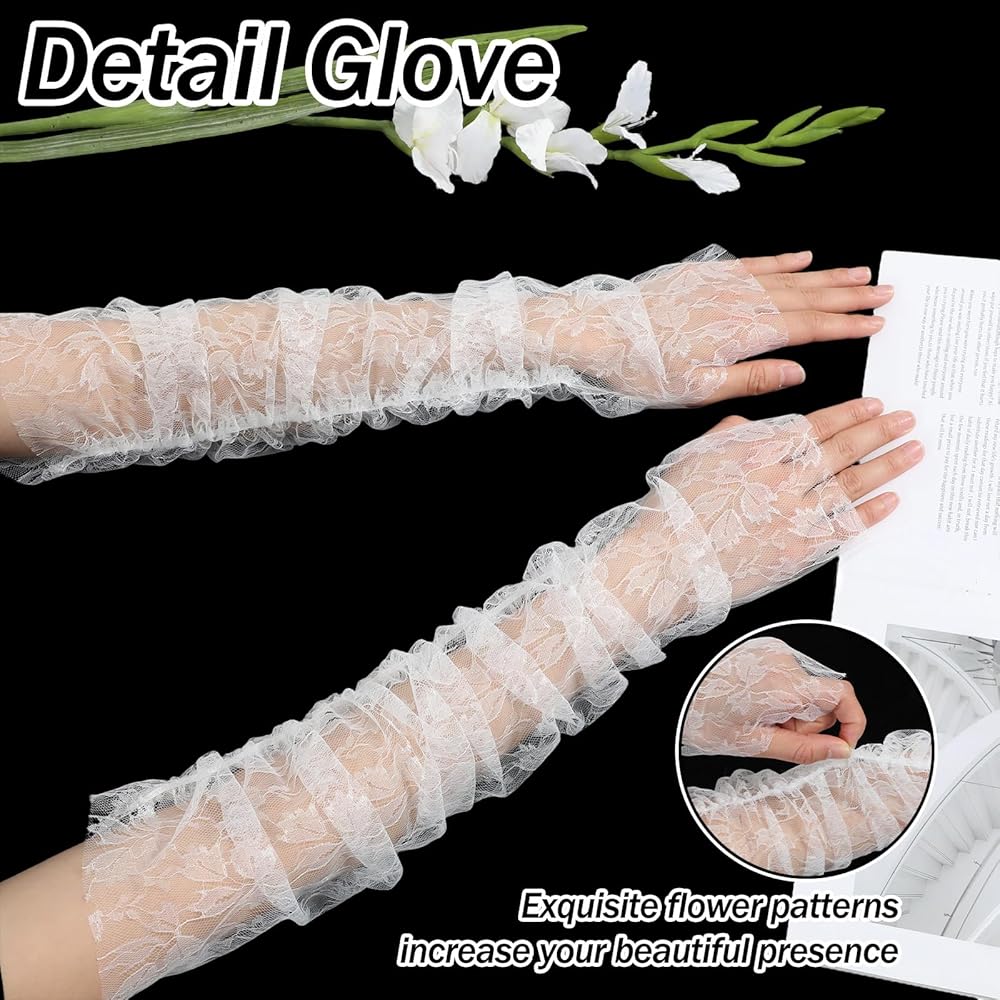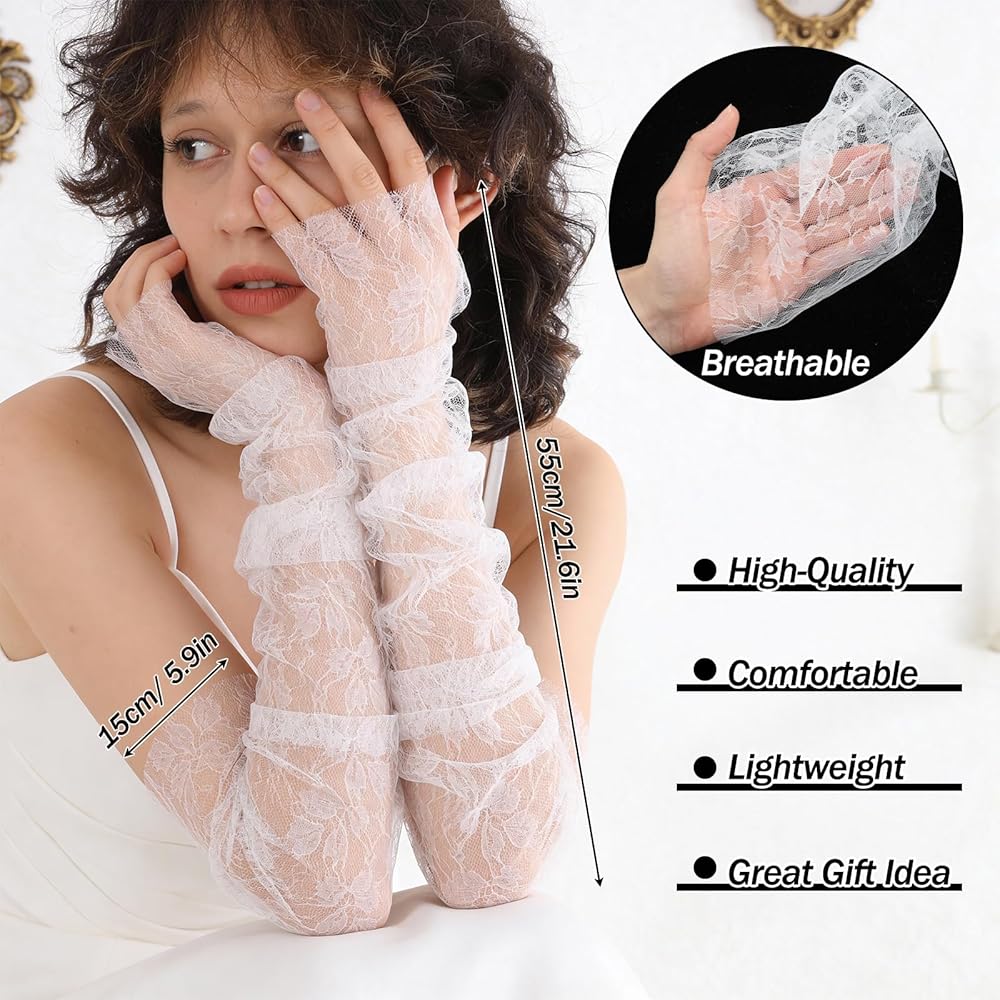 Charming Design: Featuring a fingerless style, these long white lace fingerless gloves offer easy adjustment and freedom of movement, adding an elegant and sophisticated touch to enhance your overall appearance.