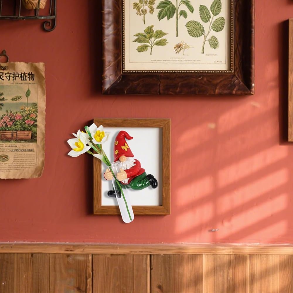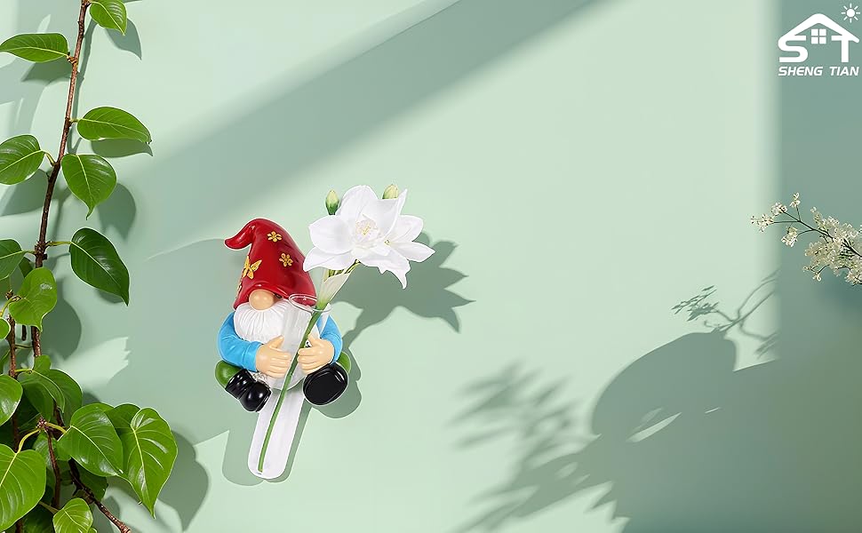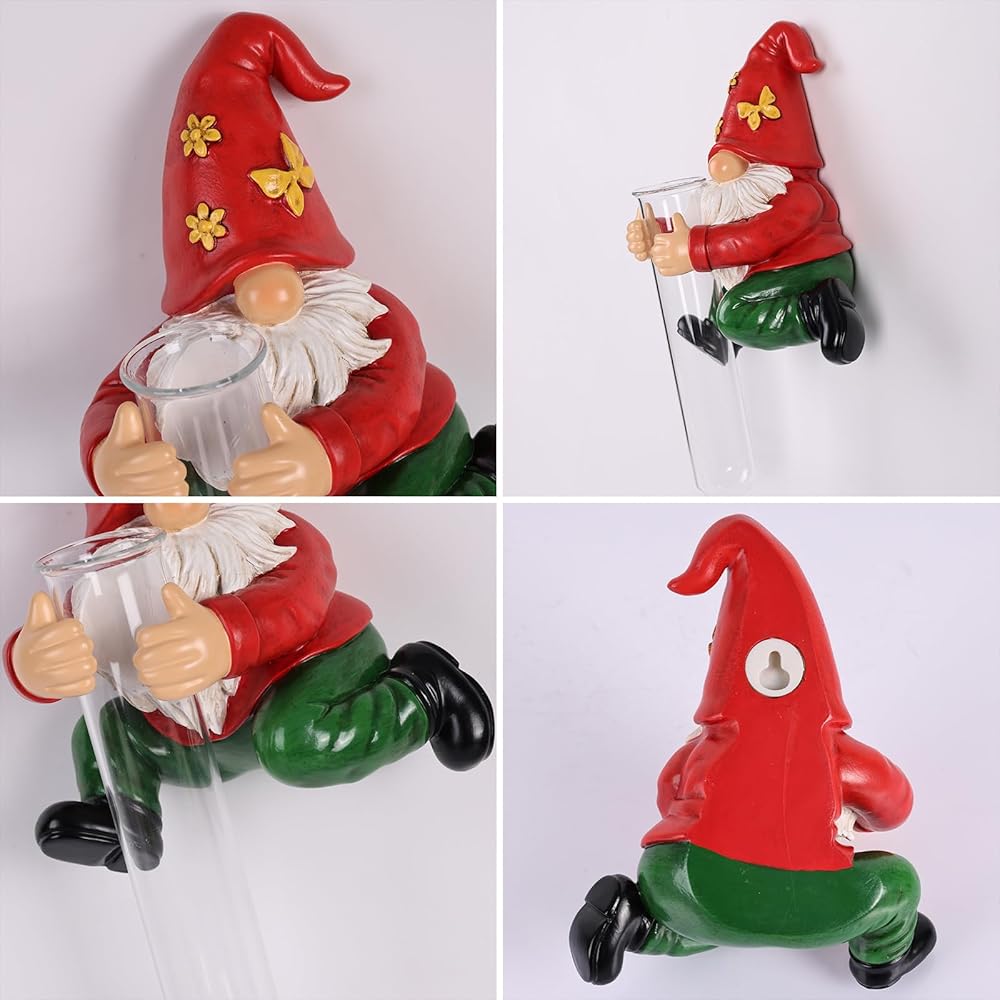 2-in-1 Wall Vase: Decor + Practical Plant Holder Beyond a charming gnome statue, it doubles as a wall vase and wall flower vase with a 5.91in(15cm) long, 1.38in(3.5cm) diameter glass test tube—perfect for test tubes for plants (fresh flowers, dried bouquets, or hydroponic cuttings like pothos fit beautifully!). This space-saving wall mounted flower vase acts as both a decorative hanging wall vase and a functional water plant vase: enjoy the gnome's charm while nurturing greenery, blending decor and utility seamlessly. The slim test tube vase design even lets you style it as a hanging test tube vase for trailing vines or single stems.