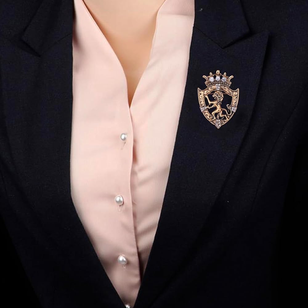 This retro crown lion brooch, featuring a majestic lion silhouette, can be styled as a lapel pin, tie clip, or coat accessory. It adds a touch of strength, elegance, and personality to both formal business attire and casual fashion, making it a sophisticated piece that showcases confidence and individuality.